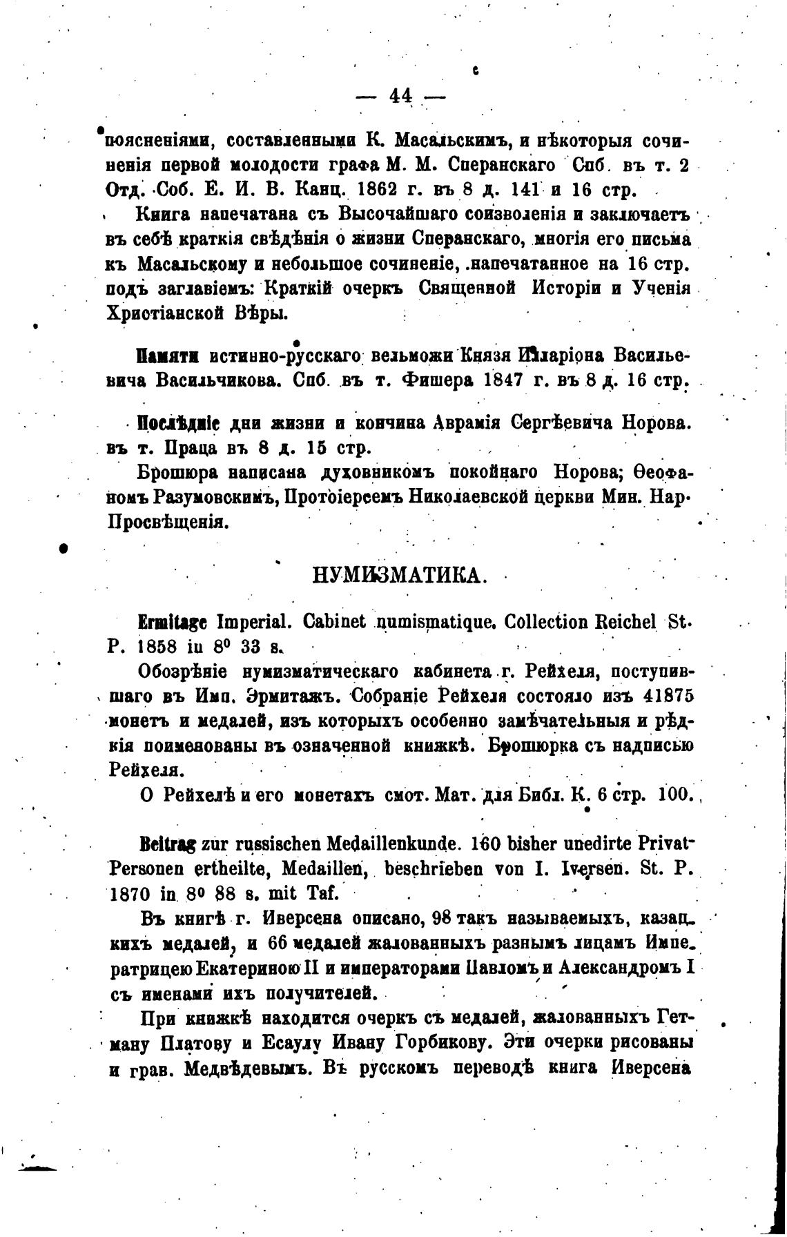 0603piHie нумизматическаго кабинета .г. Рейхеля, поступив-