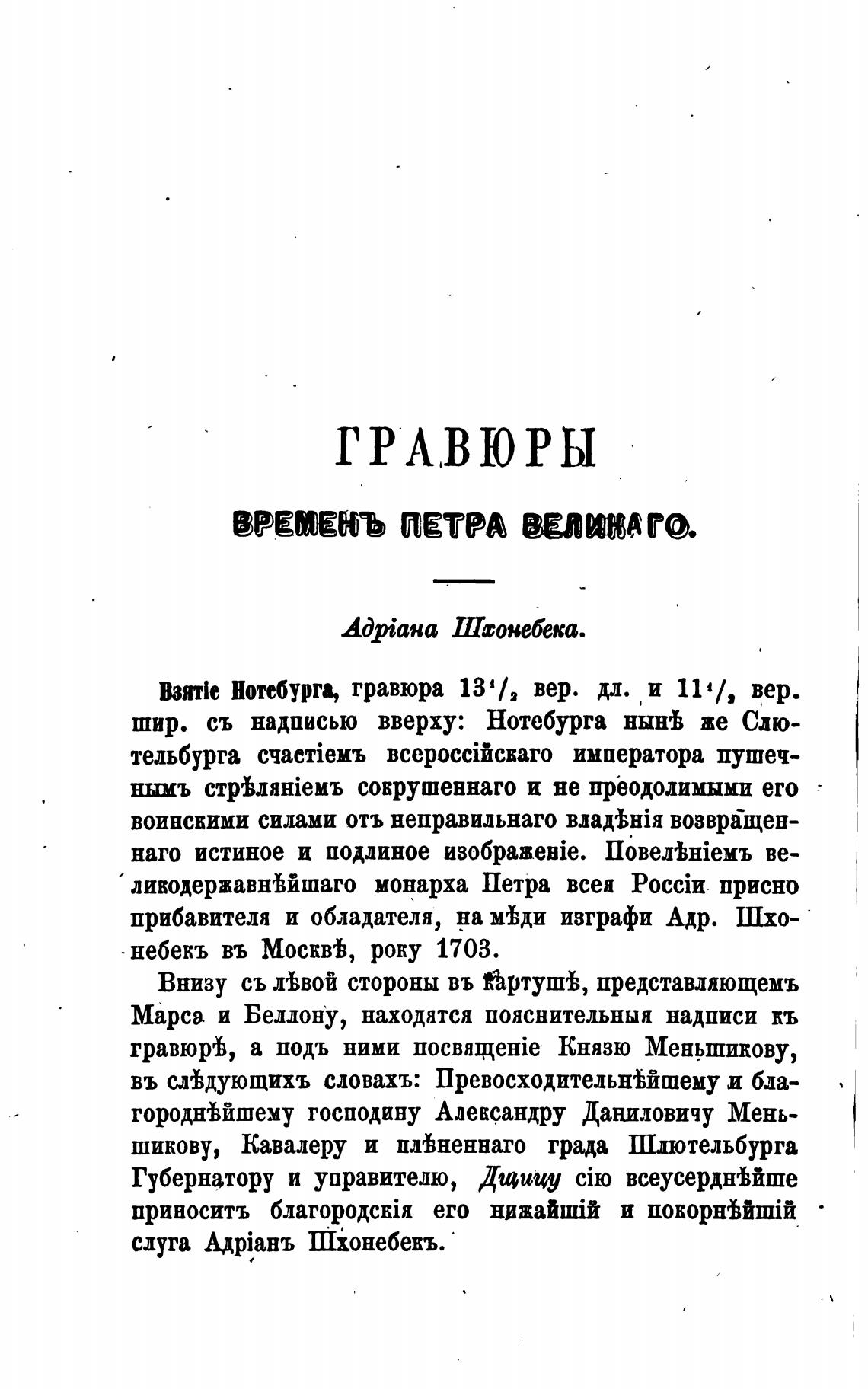 гравюрВ, а подъ ними Князю Меньшикову,