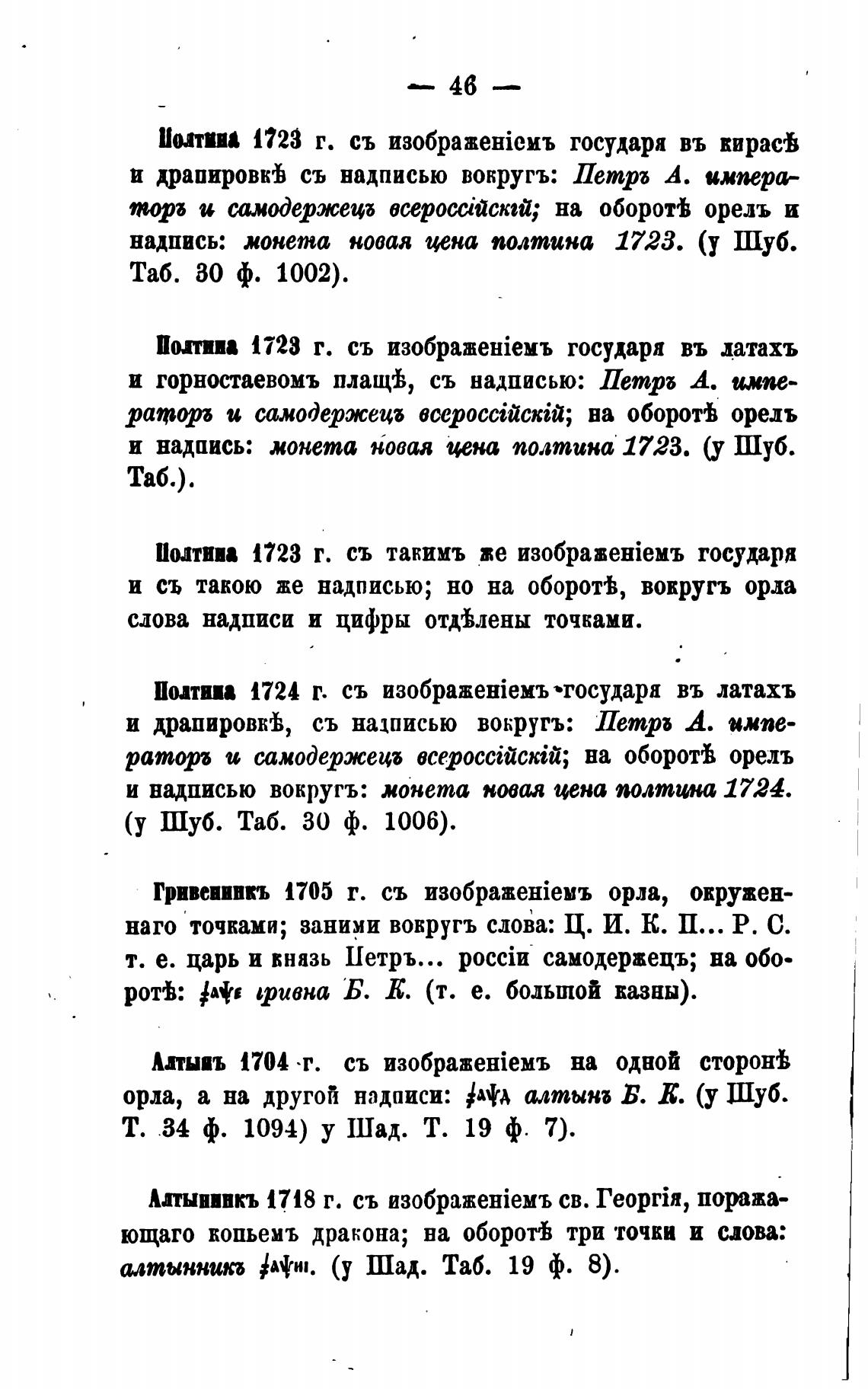 орла, а на другой надписи: алтынб Б. Е. (у Шуб.