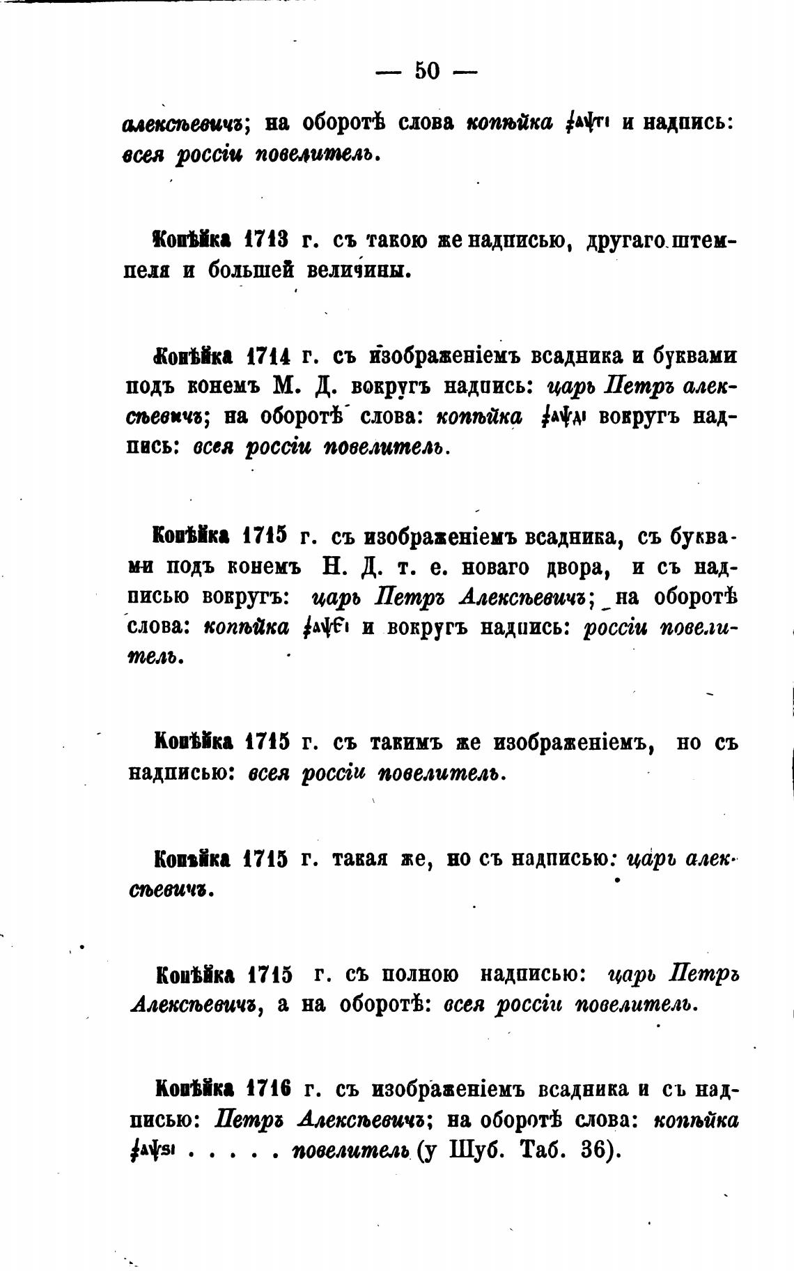Колика 1715 г. такая же, но съ надписью: царь алею