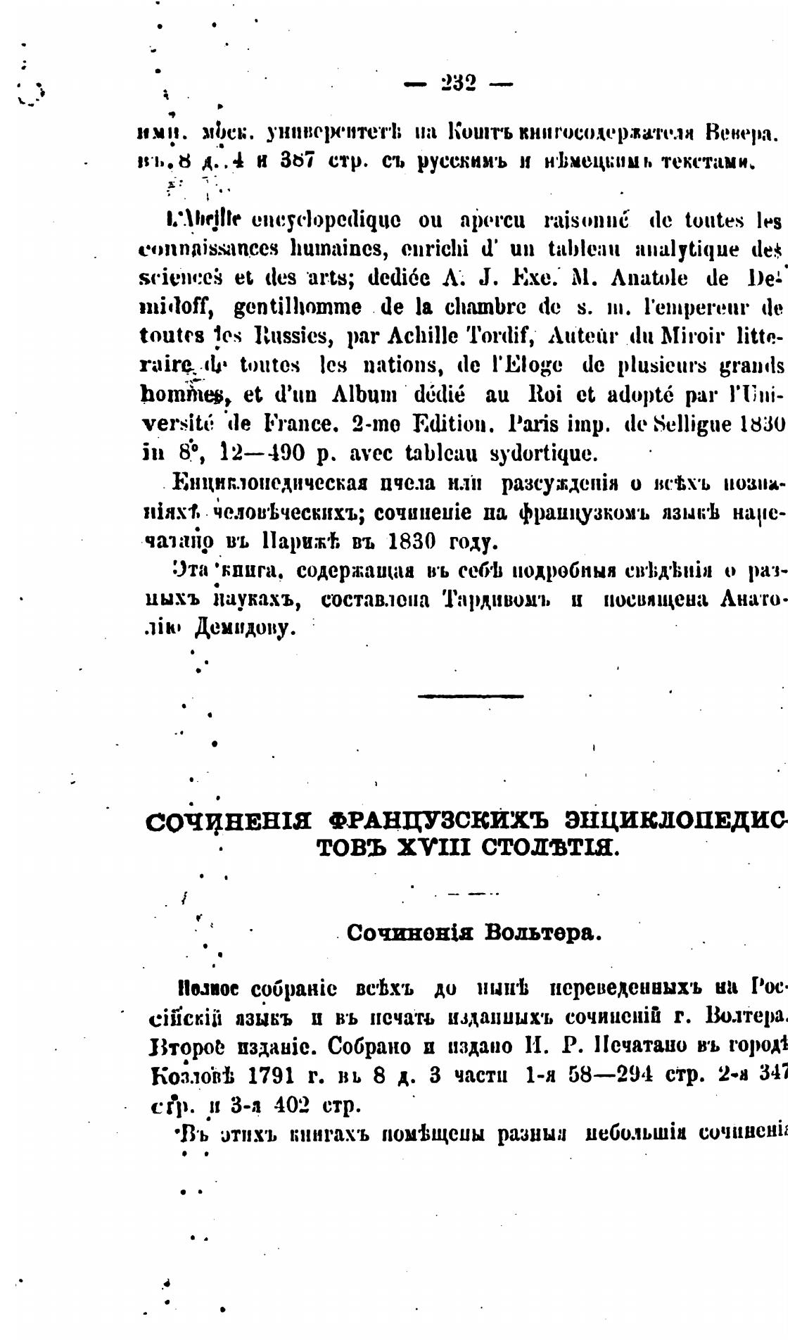 ciickifl пзыкъ и въ исчтгь изданиых•ь сочиис\йй г. Волтера.
