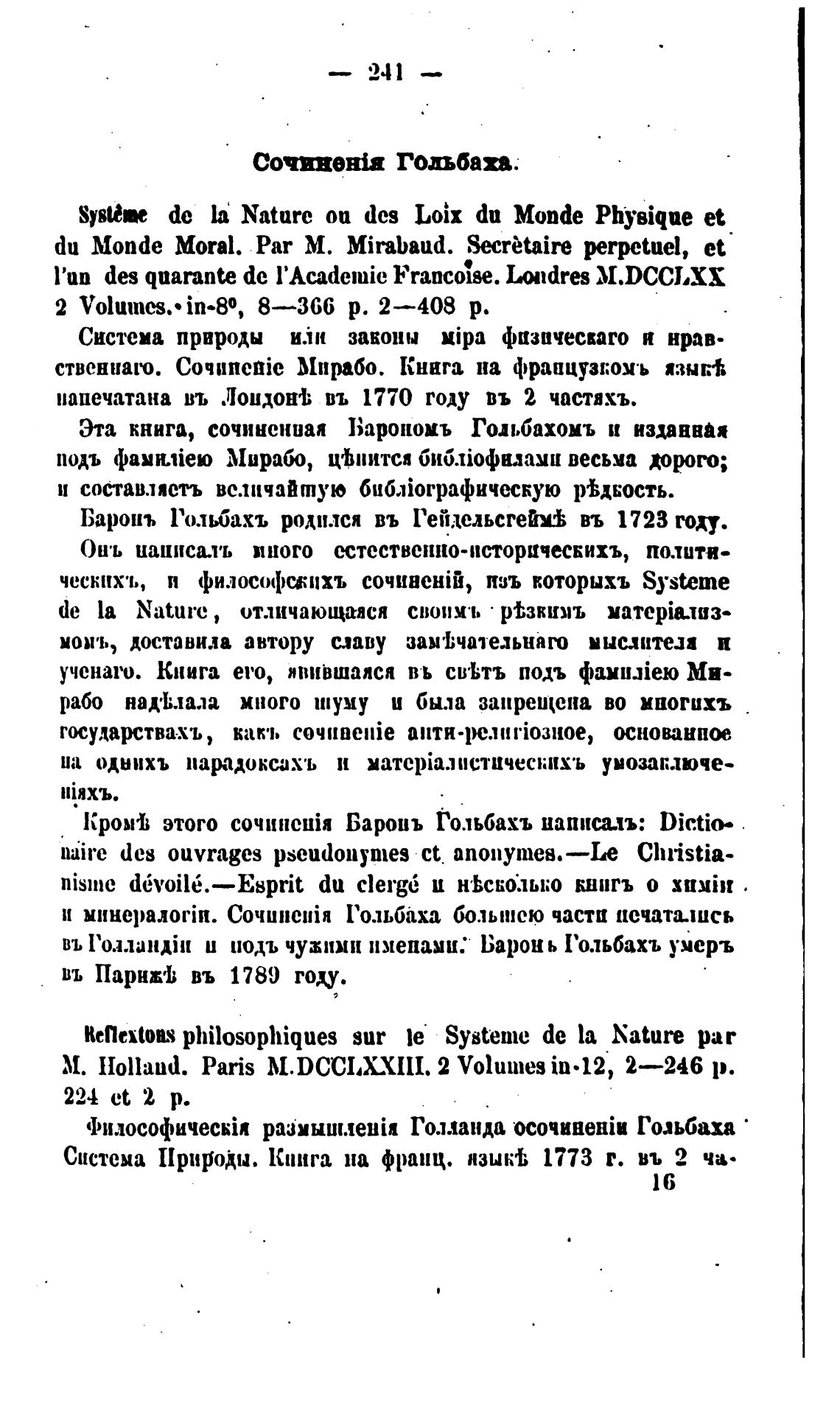 въ l'o.1.WHAill и иодъ чумши именами: Барон ь 1'ольбахъ умерь