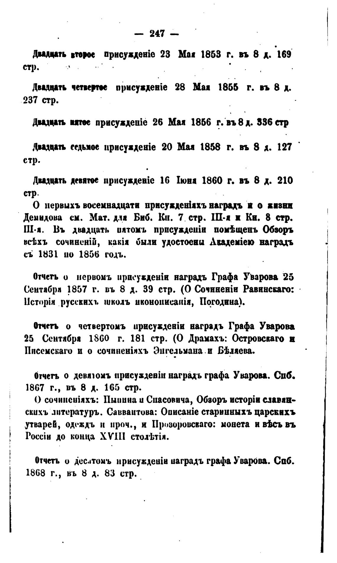 Отчеть о Дес.втомъ наградъ графа Уварова. Саб.