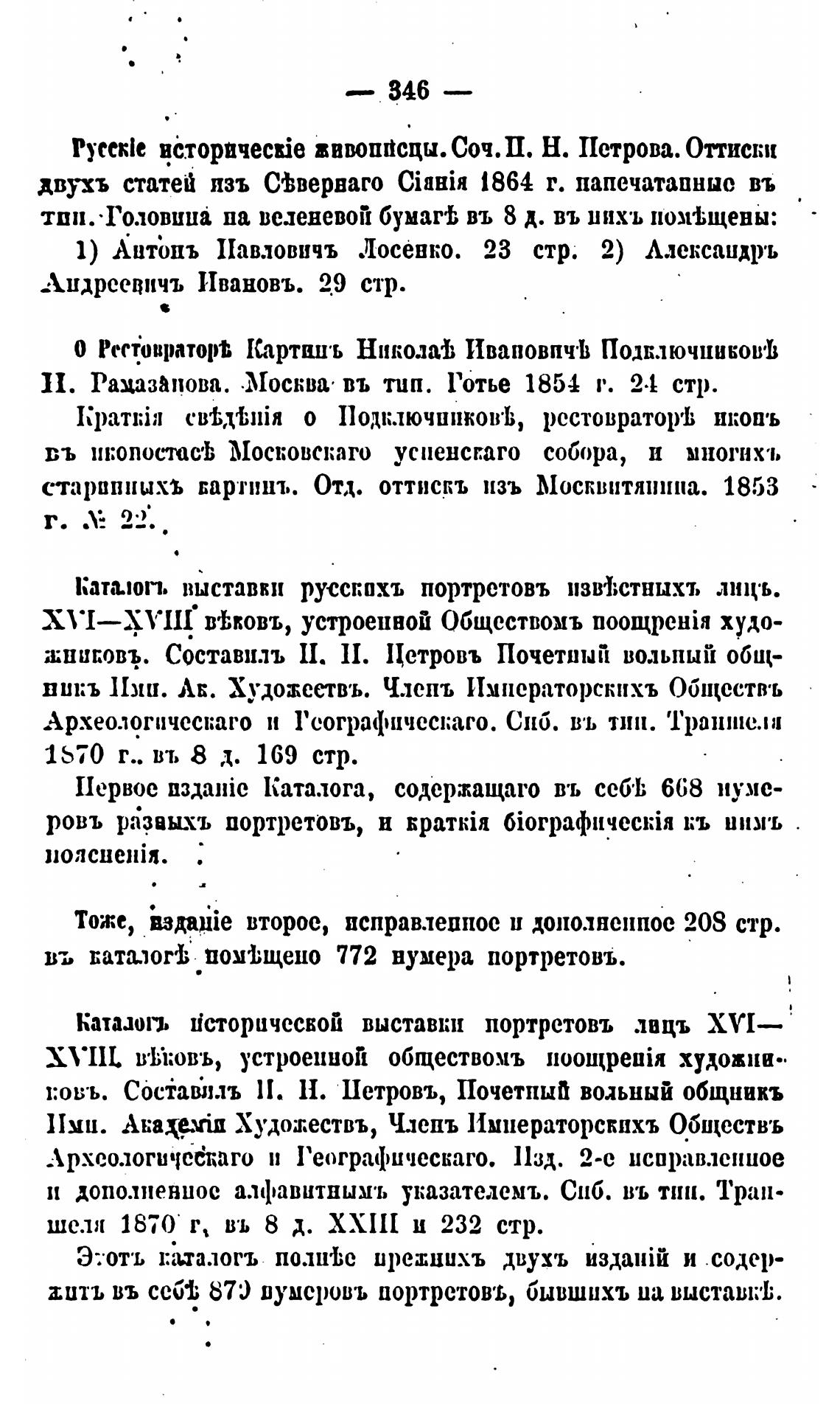 тить въ сса; 870 шумеровъ портретовљ, бывшихъ па выставк•Ь.