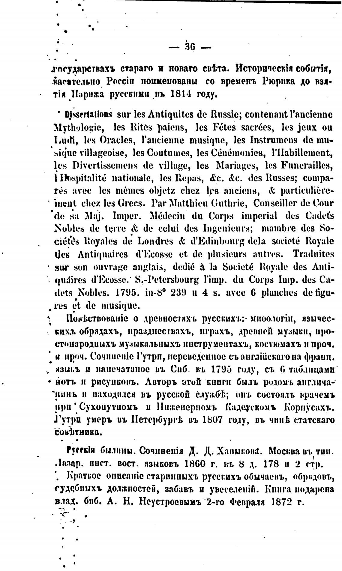 Гутрв умерь въ Петербург•ћ въ 1807 году, въ чинЬ статскаго