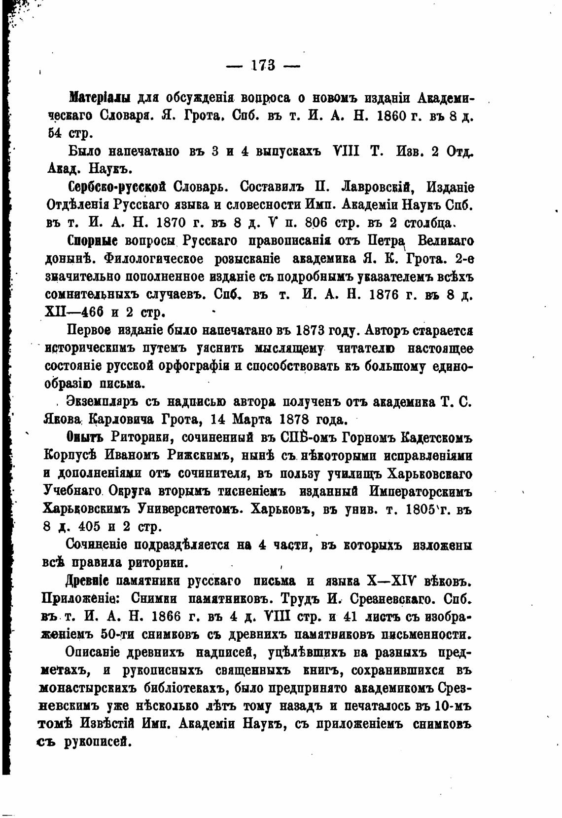 чрсваго Словара. Я. Грота. СПб. въ т. И. А. Н. 1860 г. въ 8 д.