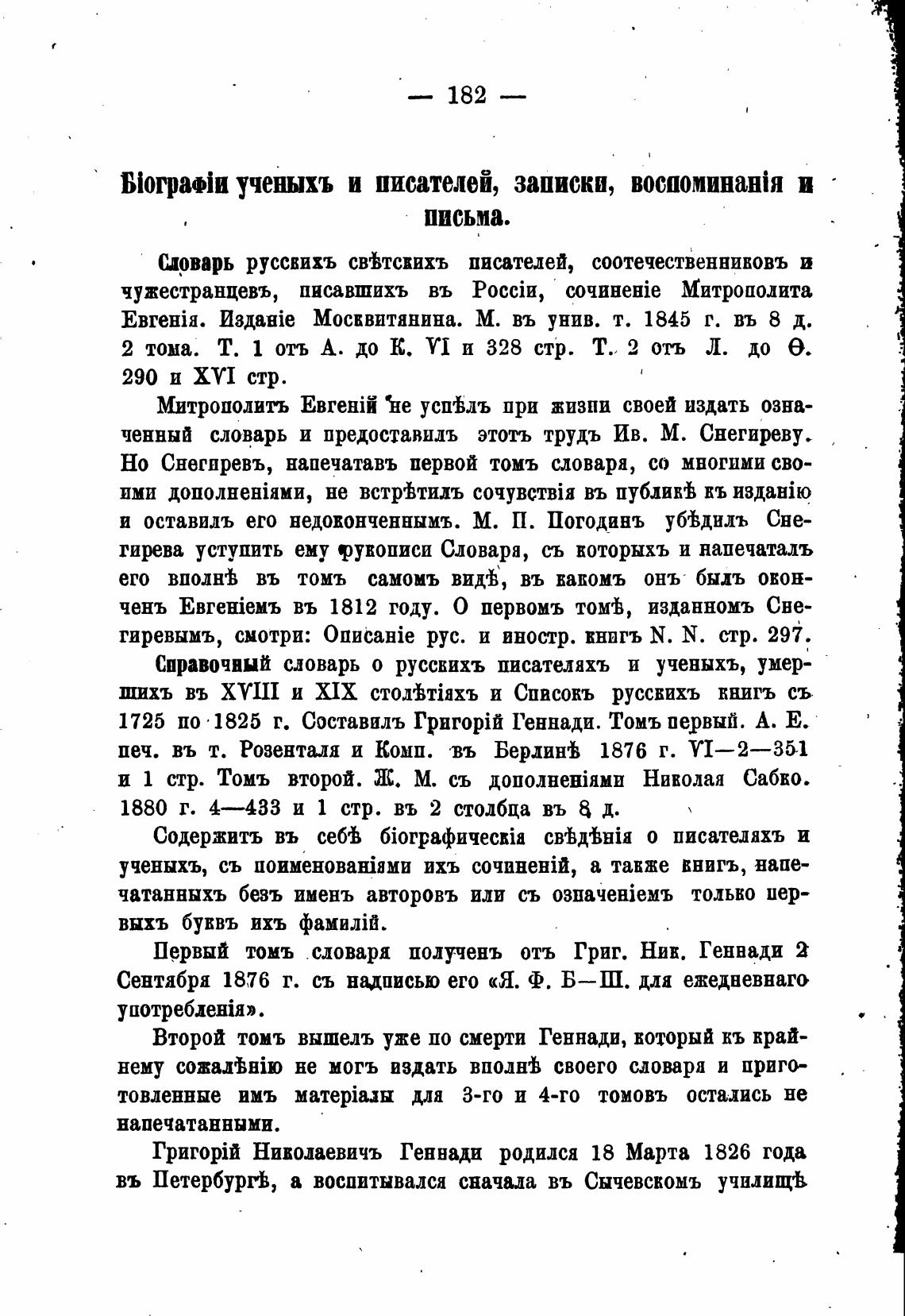 Первый томъ словари получень отъ Григ. Ник. Геннади 2