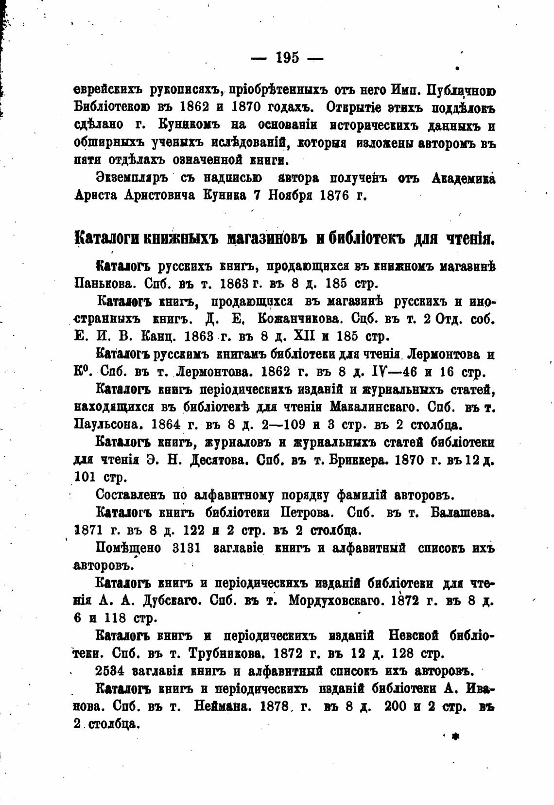 Каталоги книжшхъ магазижовъ и библ1отекъ для чтен)я.