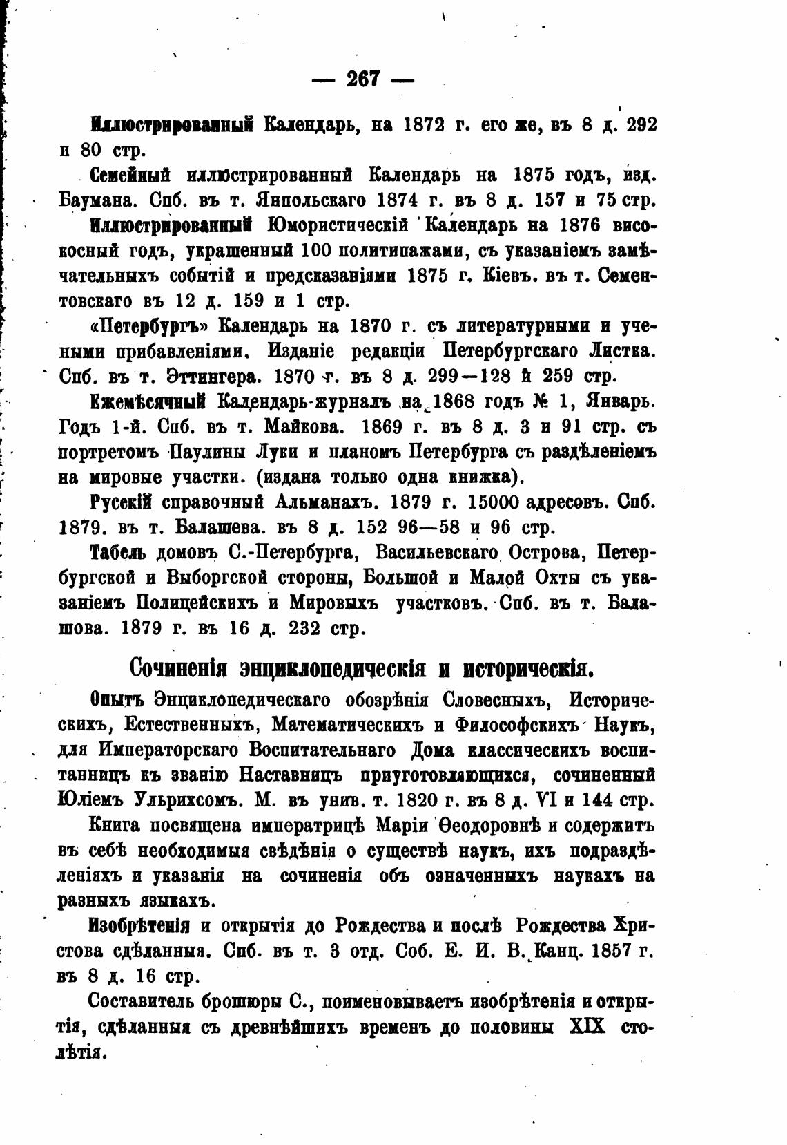 Иллюстрировавный Календарь, на 1872 г. его же, въ 8 д. 292