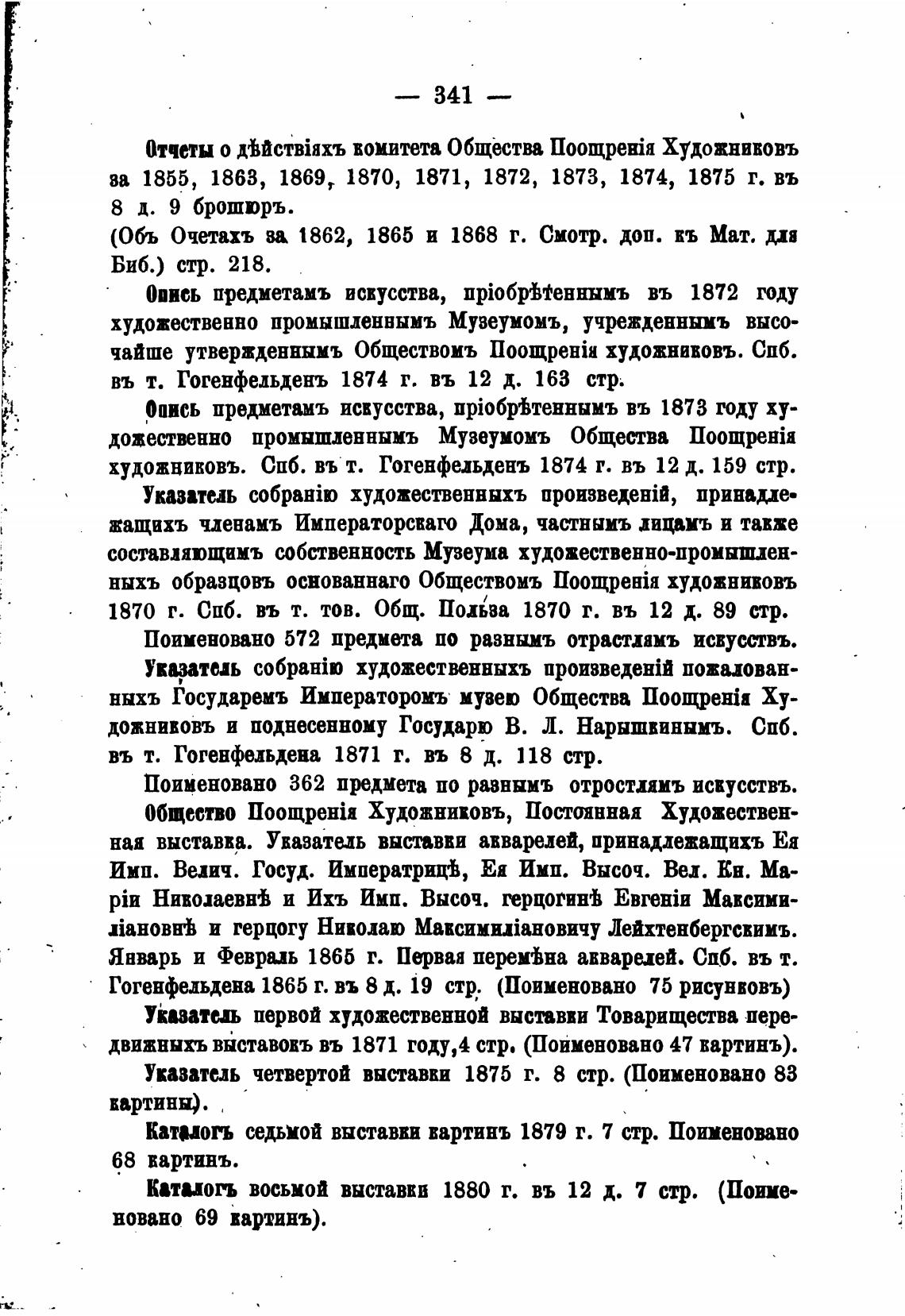 Опись предметамъ искусства, въ 1873 году ху-