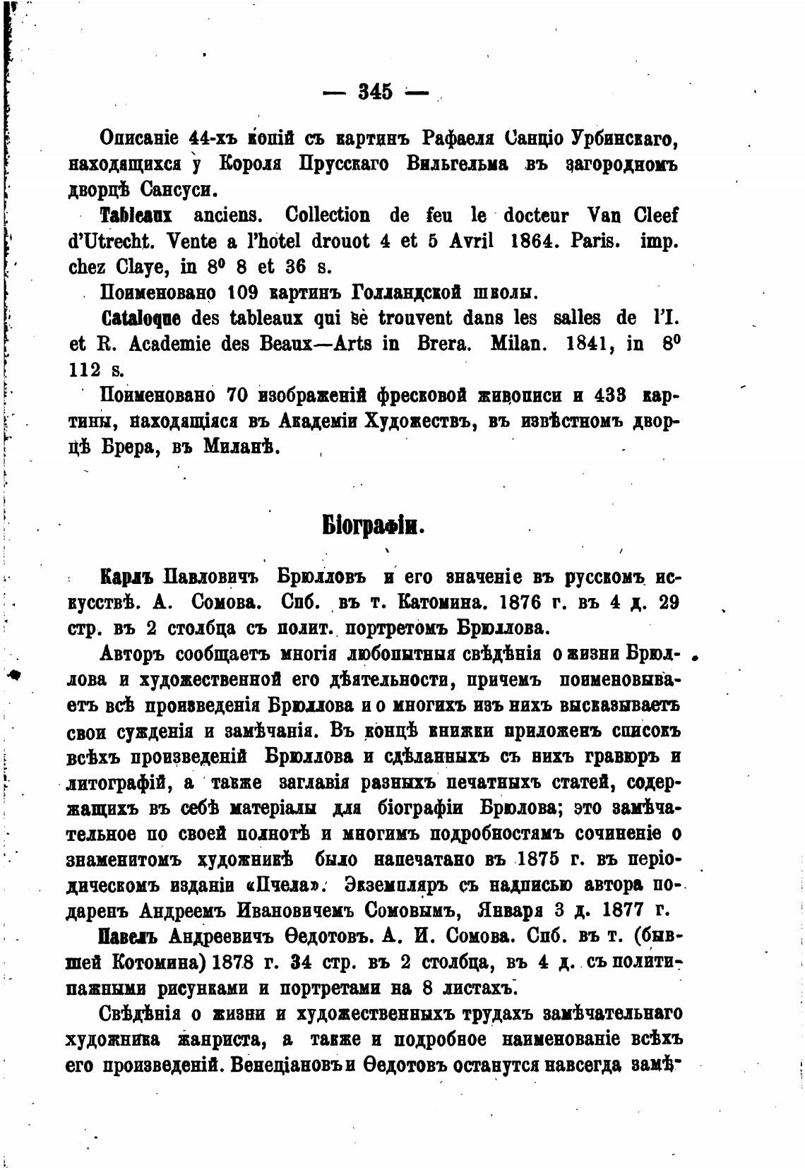 всВхъ произведенТ Брюллова и схвданннхъ съ вихъ гравюръ и