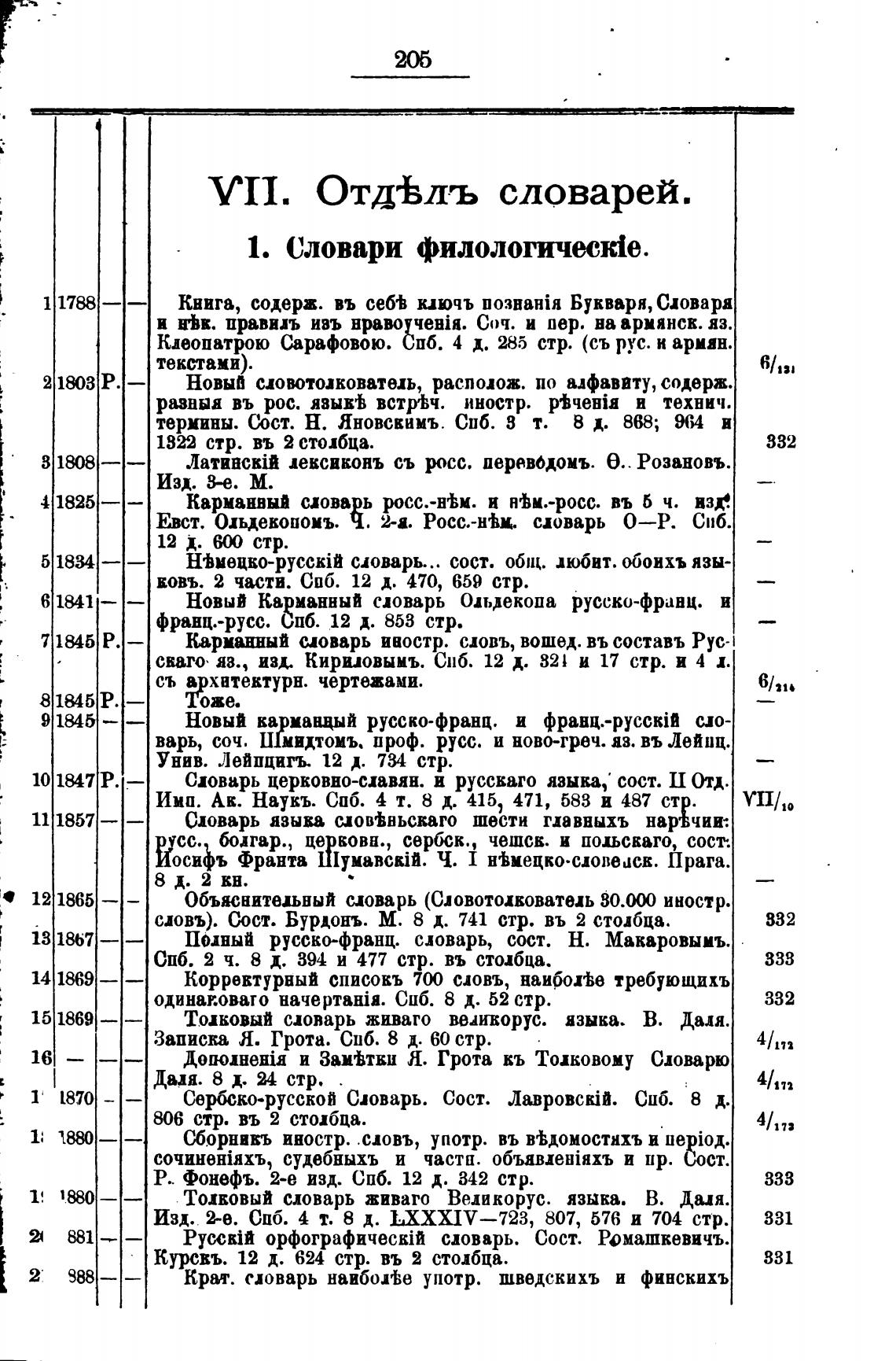 VII. ОтдВлъ словарей.