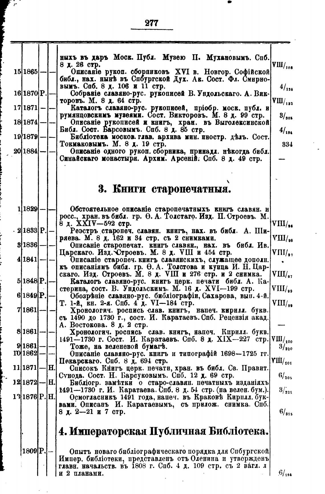 Реэстръ старопвч. славян. внигъ, нах. въ библ. А. Ши-