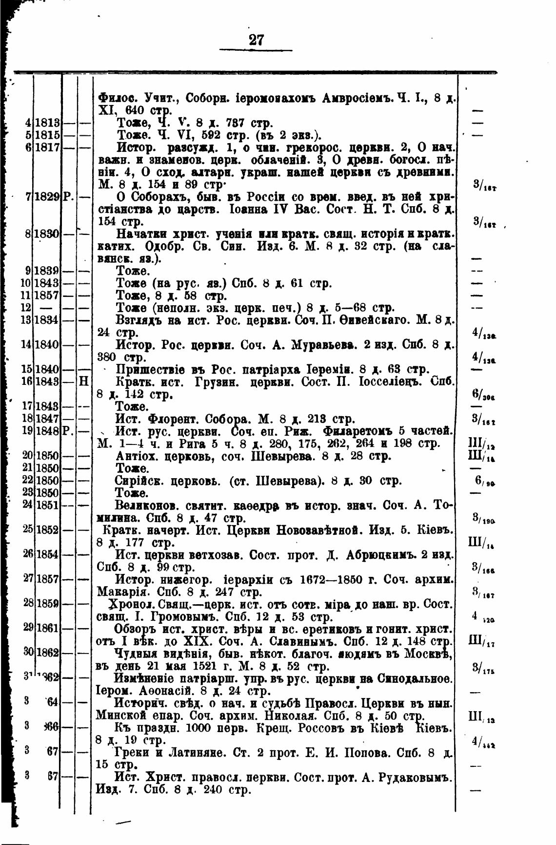 Взгихъ на ист. Рос. цервви. Соч. П. епвейскаго. М. 8 д.