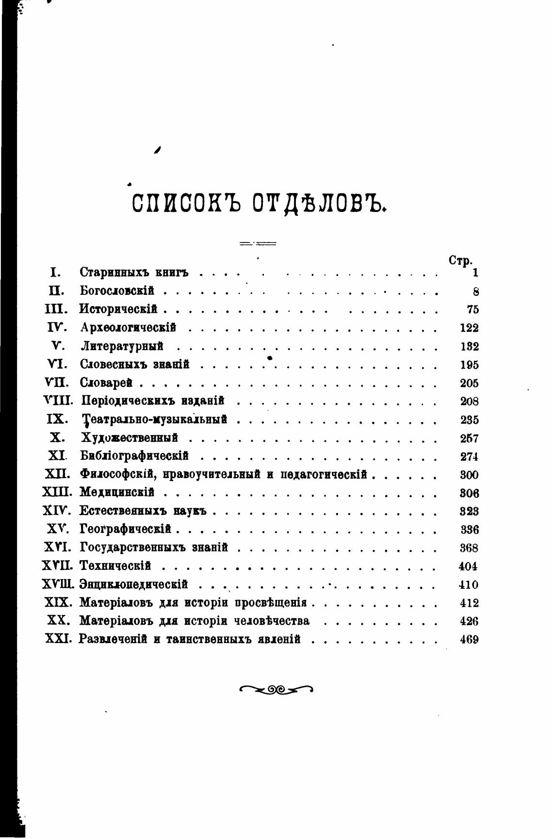 списокъ отдвловъ.
