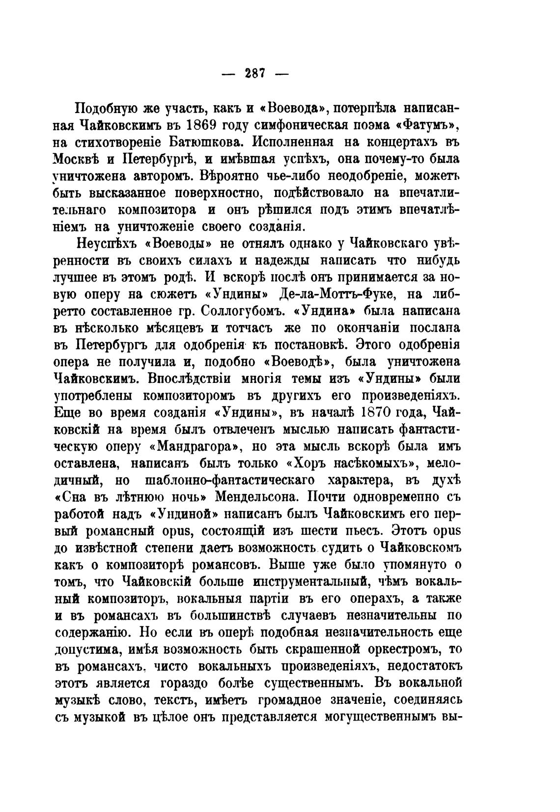 работой надъ «Ундиной» написань быль Чайковскимъ его пер-