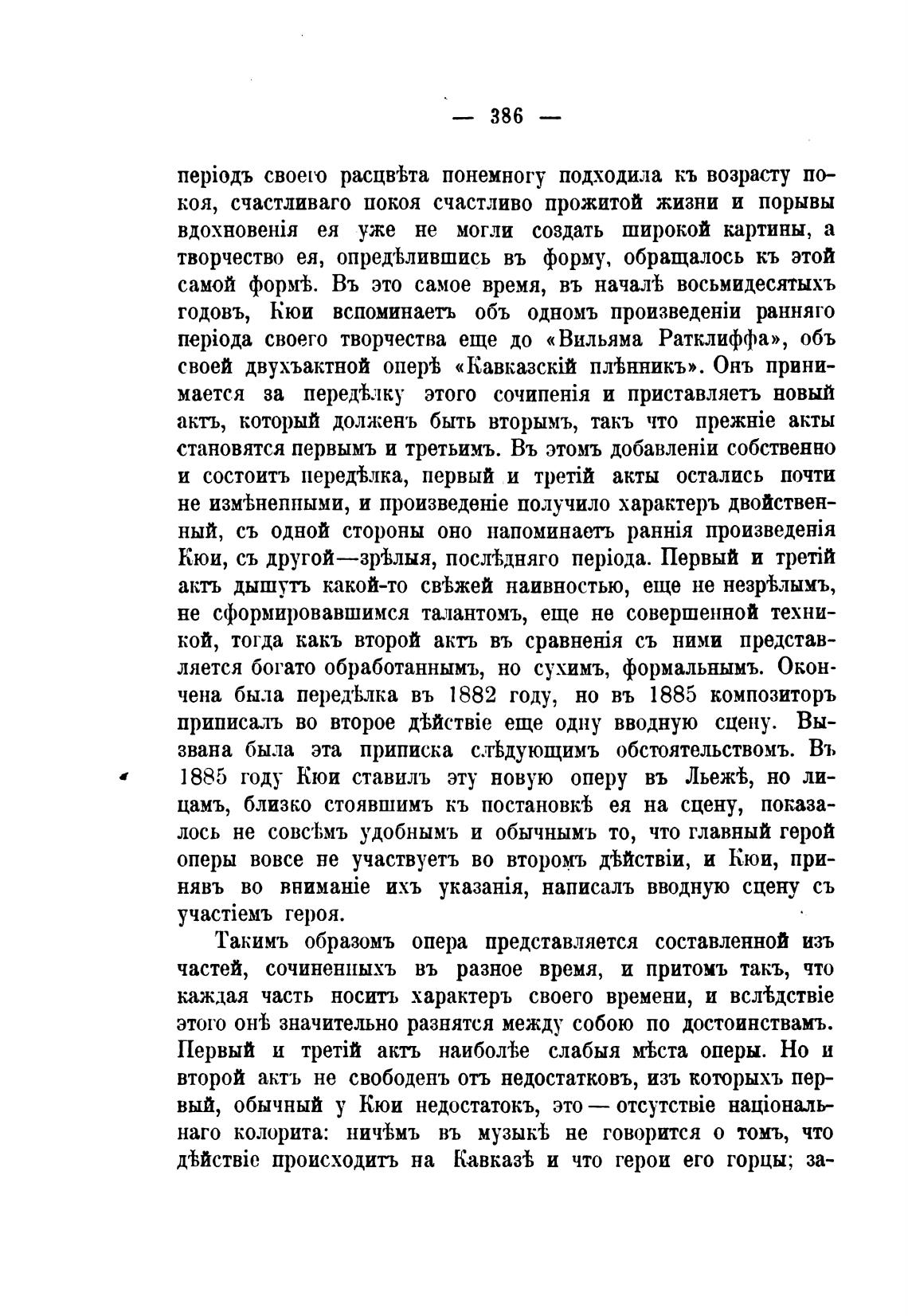1885 году Кюи ставилъ эту новую оперу въ ЛьекЬ, но ли-
