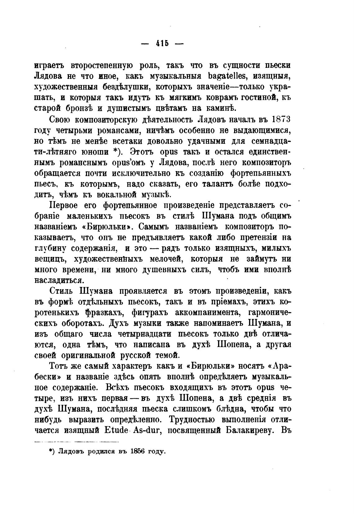 Свою композиторскую д•Ьятельность Лядовъ началь въ 1873