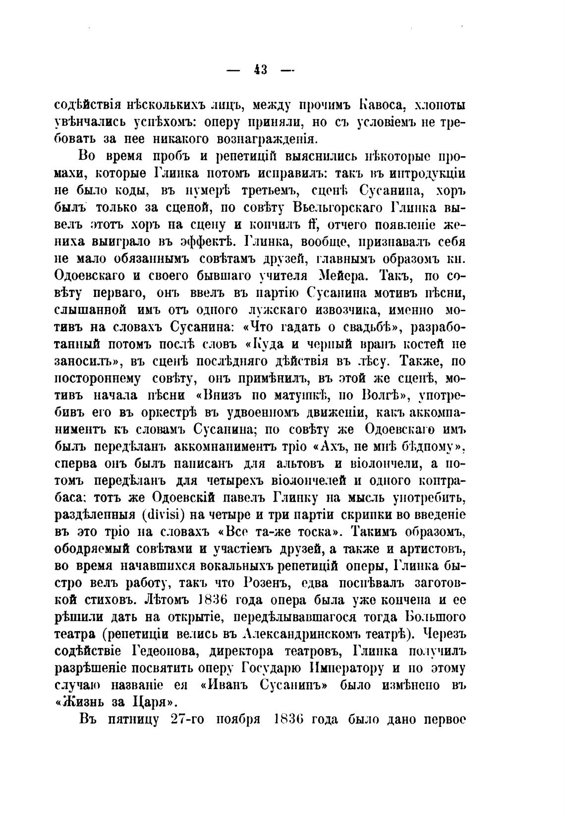 быль только за сценой, по сов•ђту Вьельгорскаго Глинка вы-