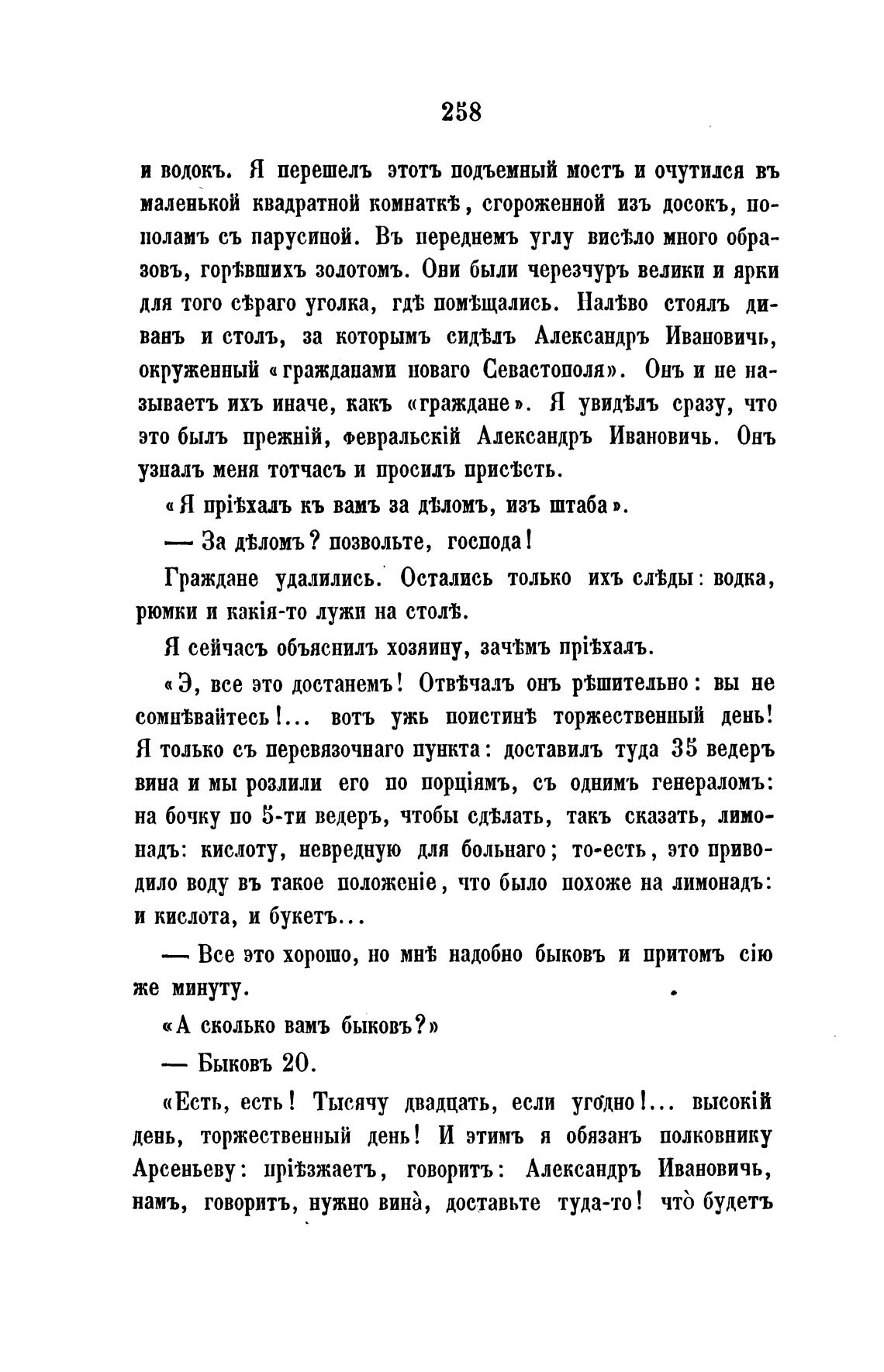 — Все это хорошо, но надобно быковъ и притомъ
