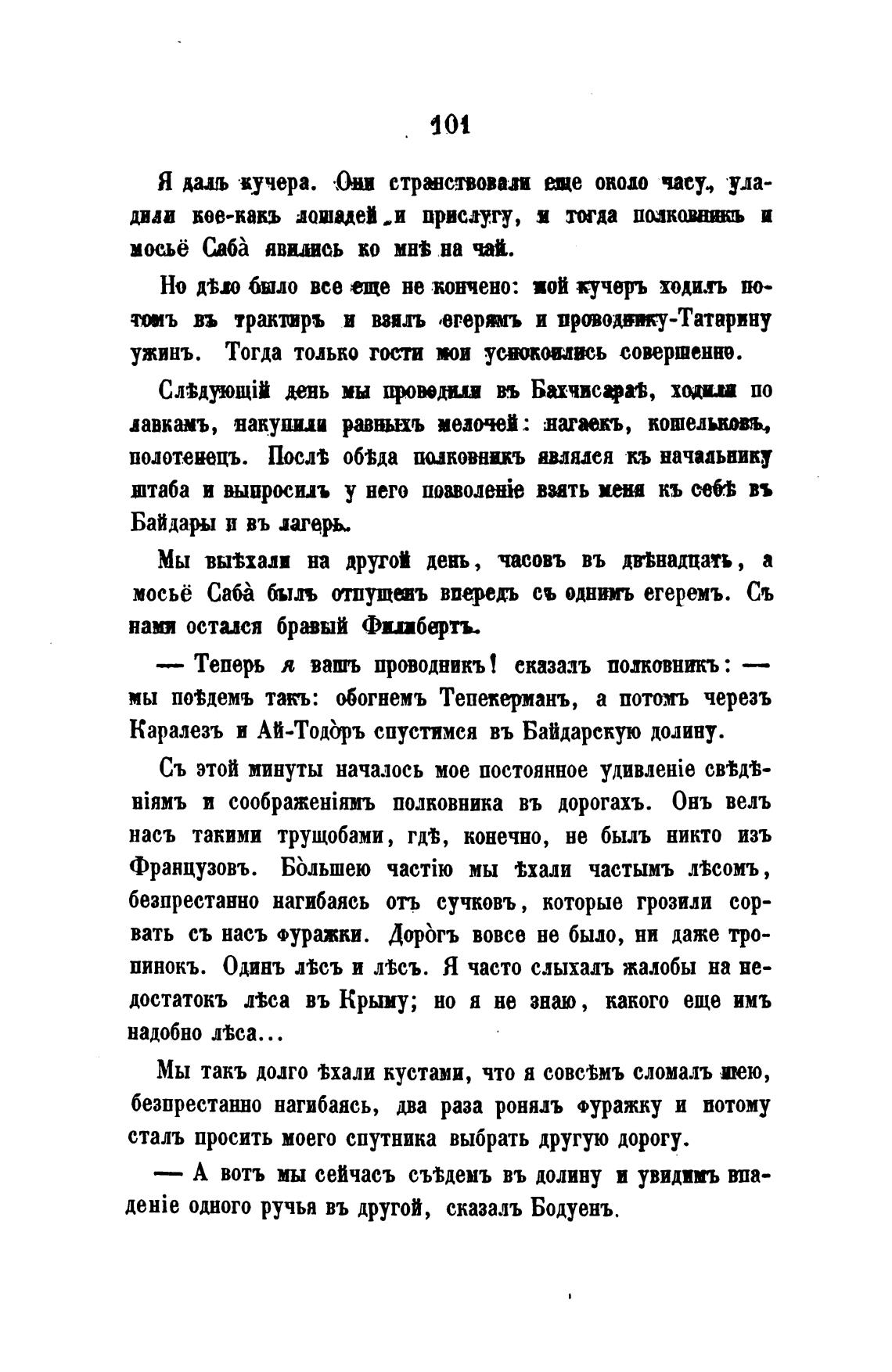 мосье Сабћ быль отшущаъ впередъ съ однимъ егеремъ. Съ