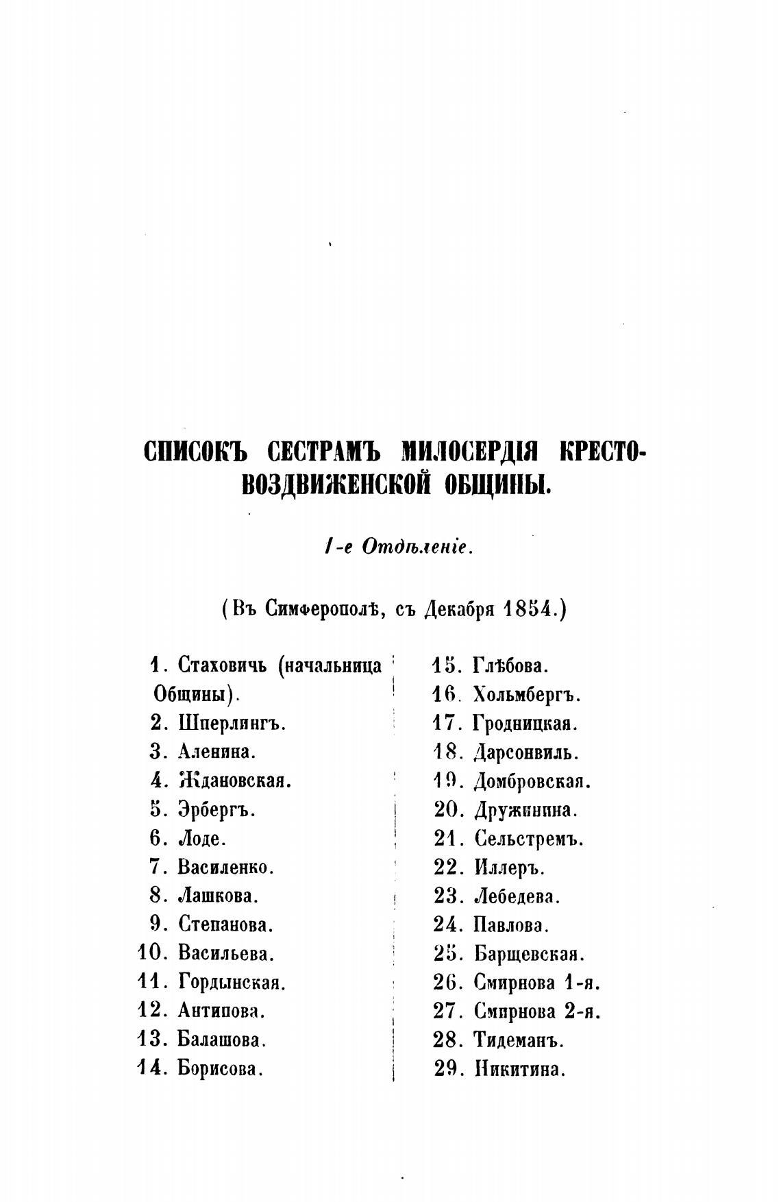 СПИСОКЪ СЕСТРАМЪ МИЛОСЕРДШ кИсто-
