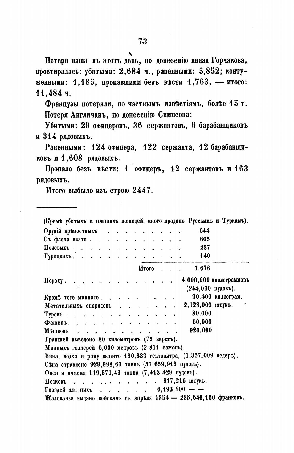 Потеря наша въ этотъ день, по князя Горчакова,
