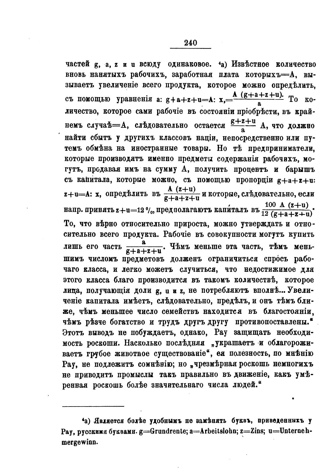 Рау, русскими буквами. g=Grundrente; a==Arbeitslohn; z=Zins; u=Unterneh-
