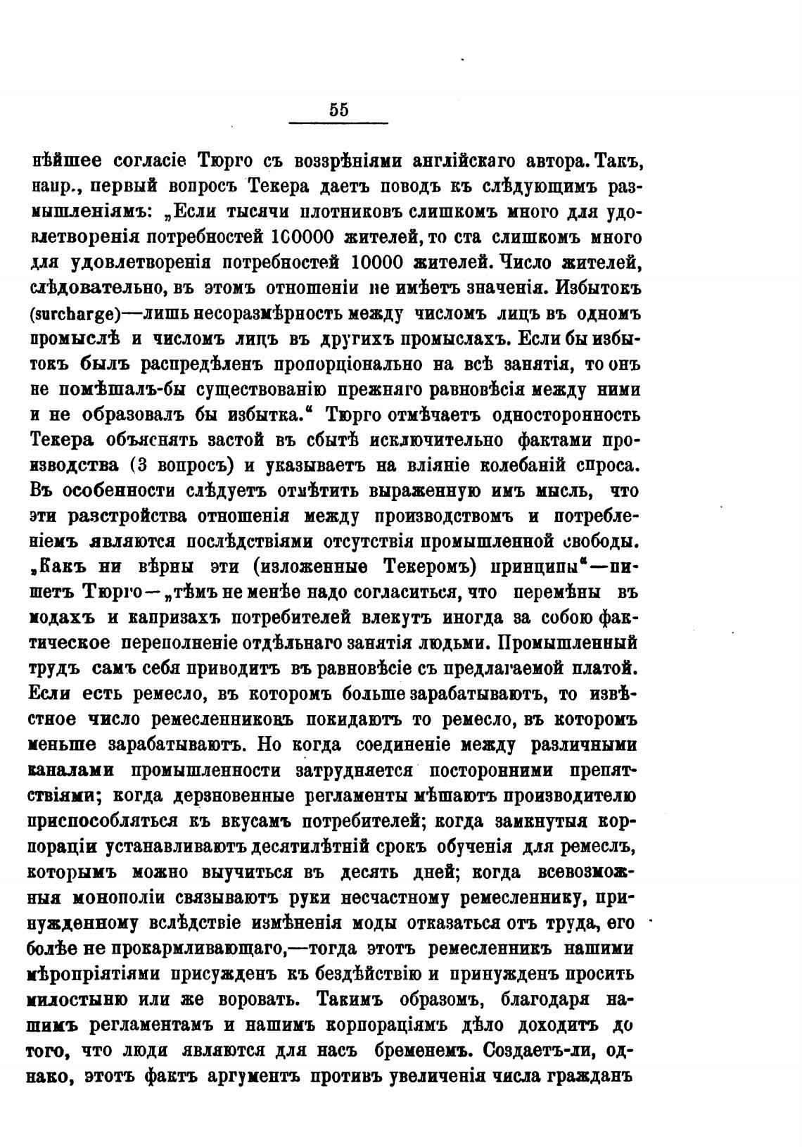 и не образовалъ бы избытка.“ Тюрго отйчаетъ односторонность