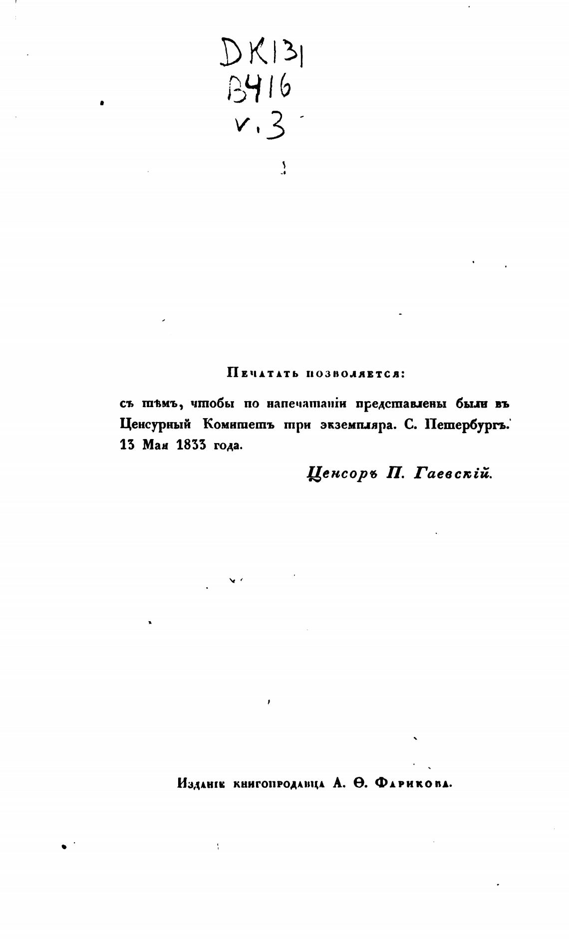 Ценсурный Комншетъ три экземпляра. С. Петербургь.