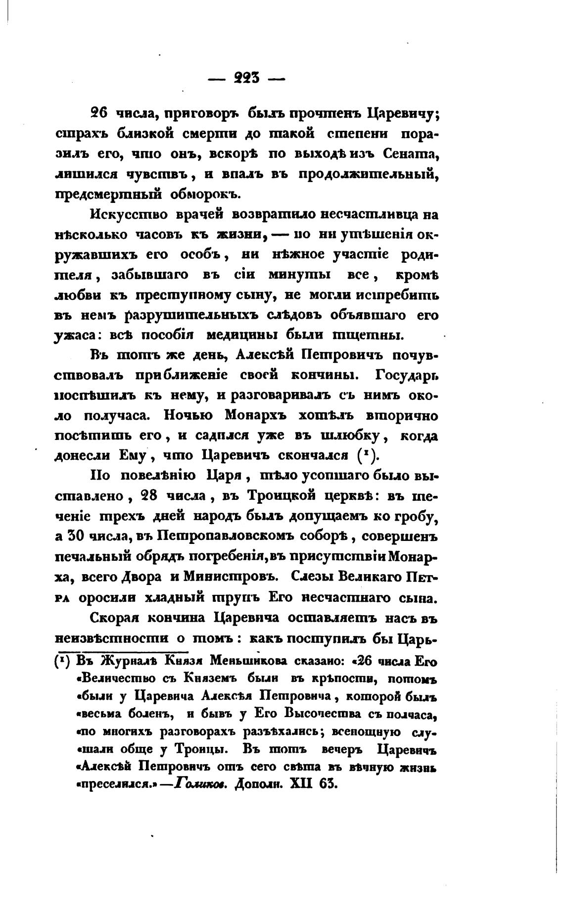 донесли Ему , что Царевичъ скончался