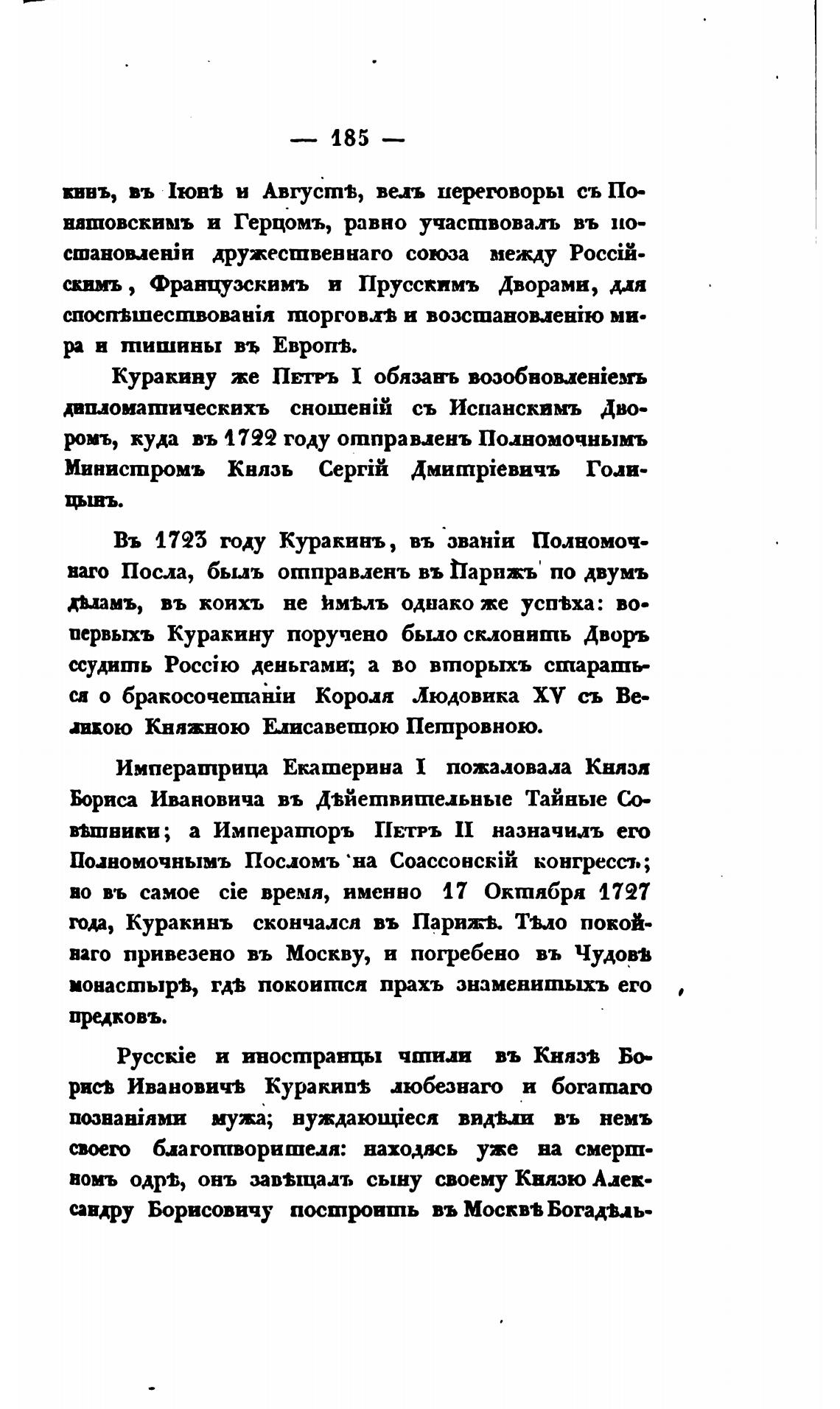 Въ 1725 году Куракинъ, въ 3BaHiH Полномоч-