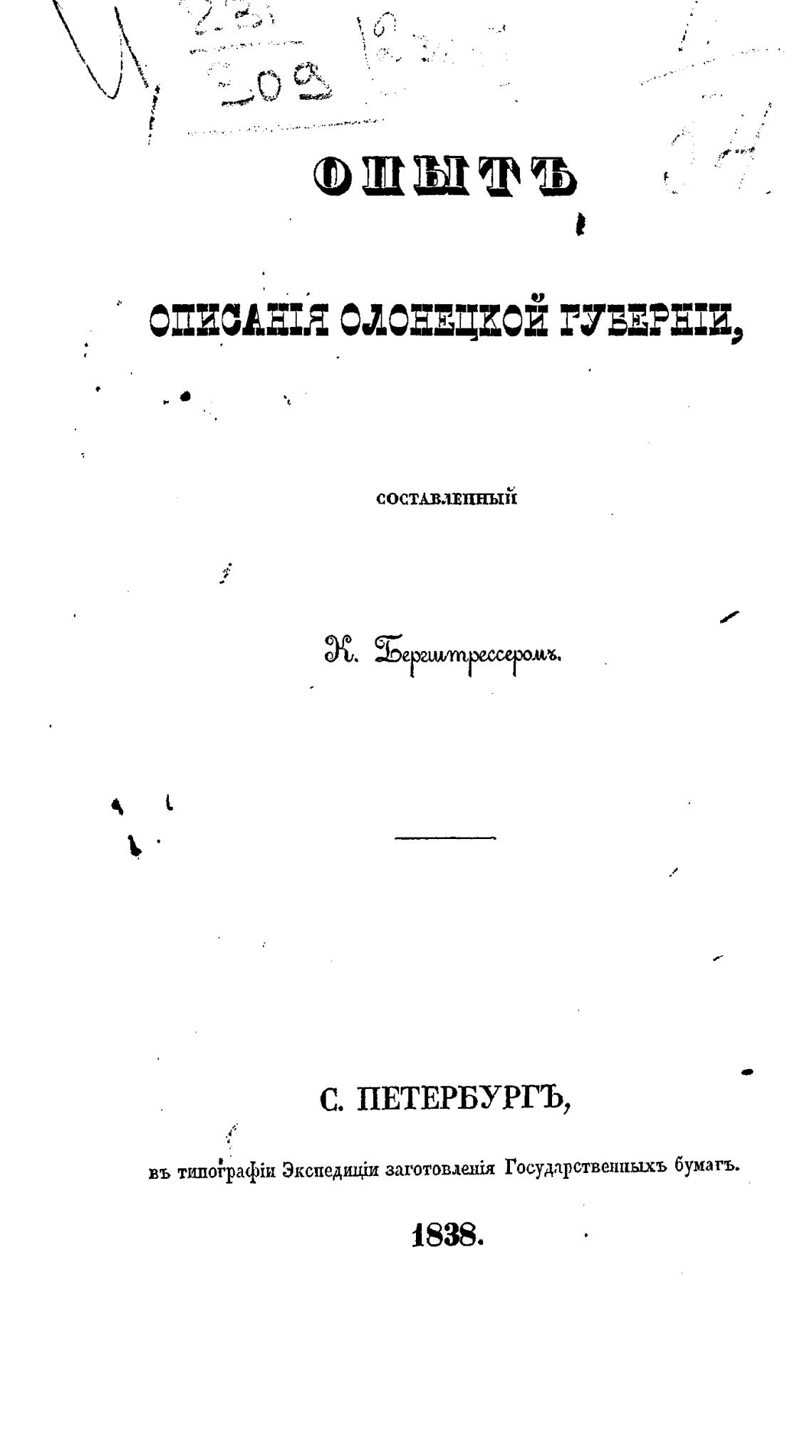 Опыт описания Олонецкой губернии. - Бергштрессер К.
