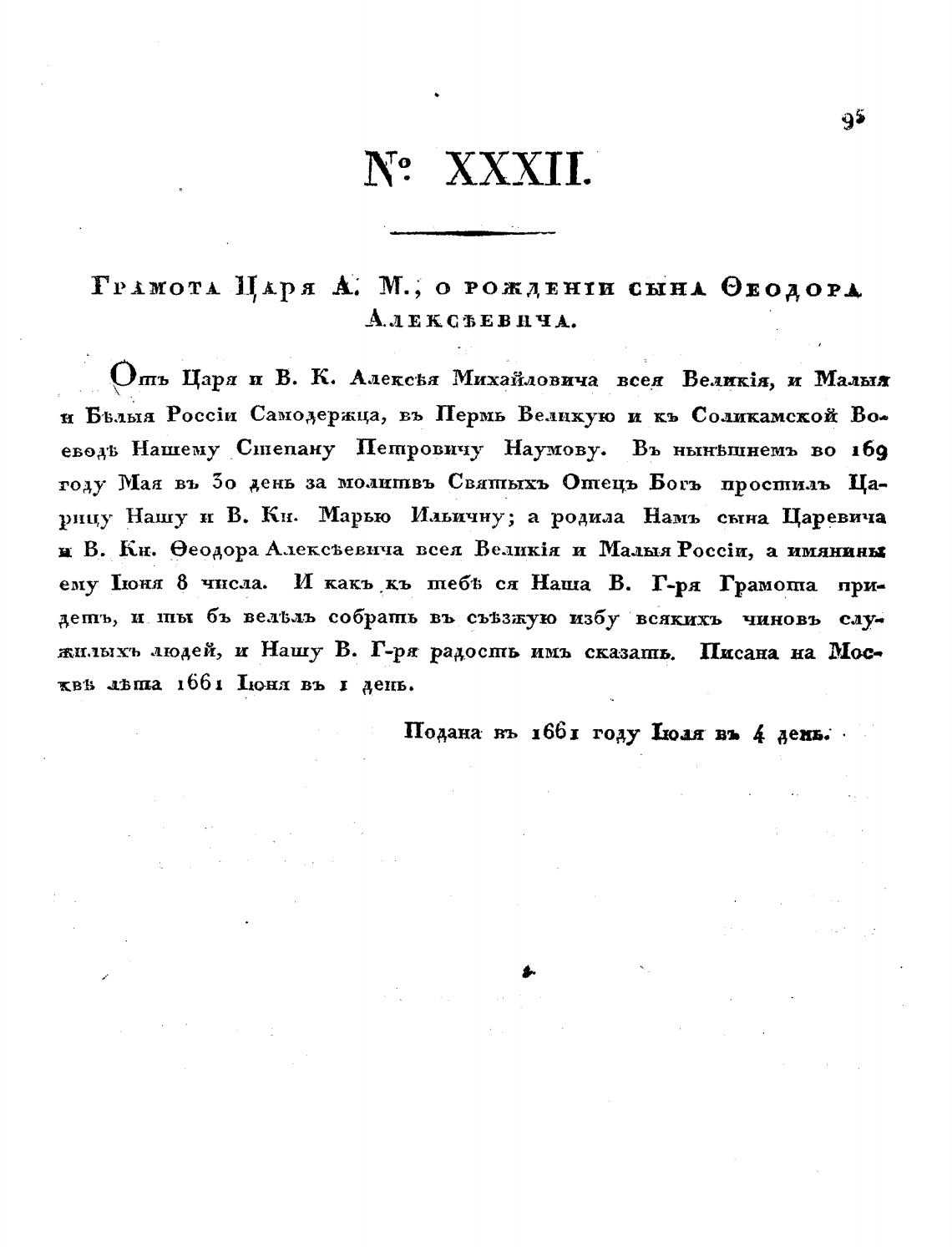 Подана въ 1661 году Ьоат вь 4 день.