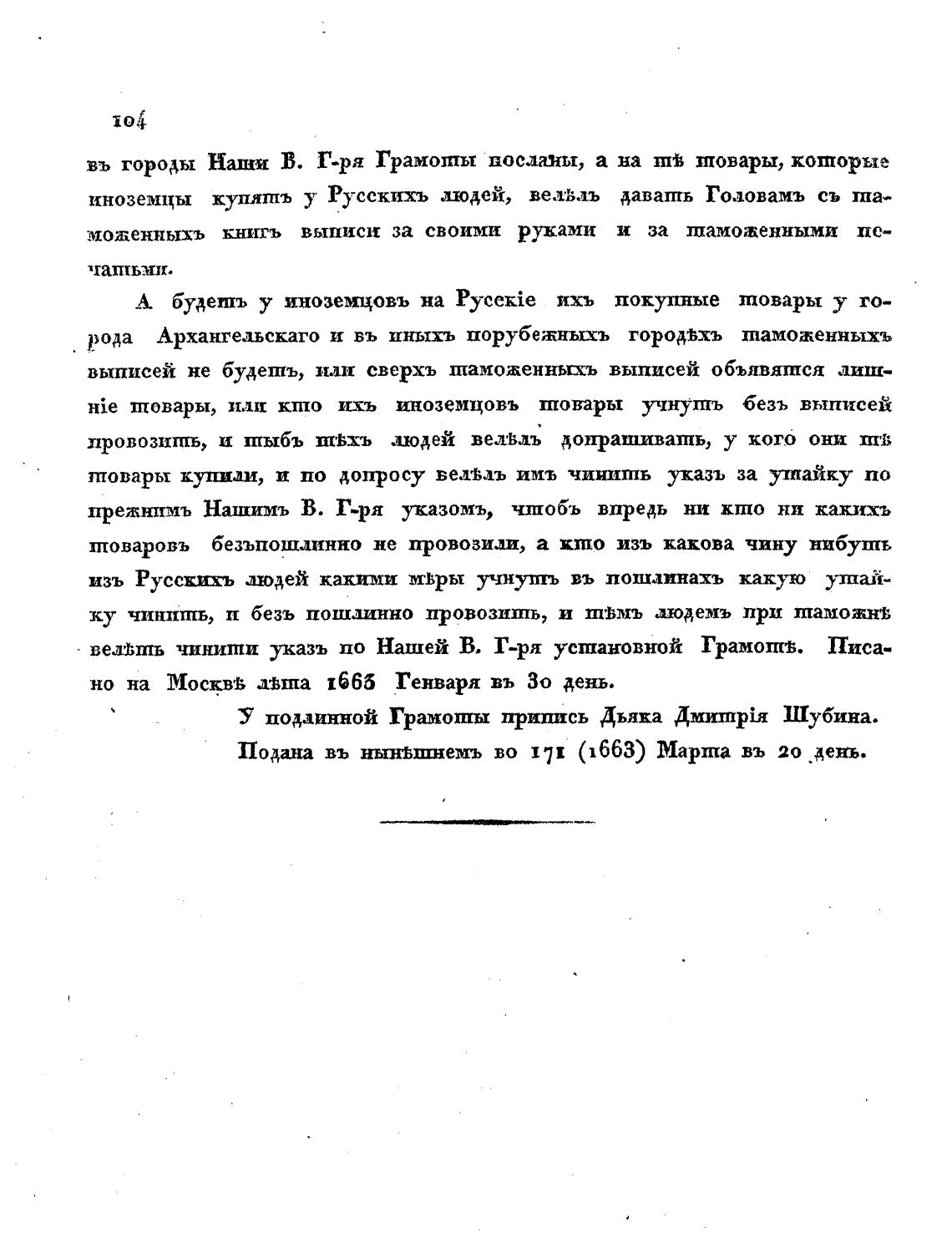 У подлинной Грамоты припись Дьяка Дмшпрђ.ж Шубина.