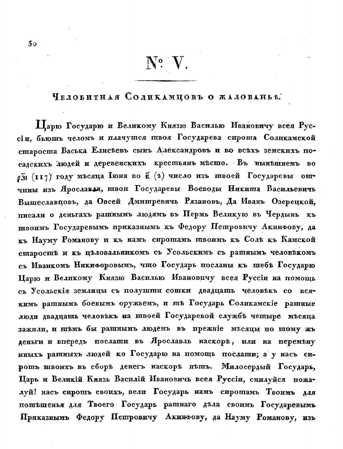 Царю Государю и Великому Князю Василью Ивановичу всея Рус-