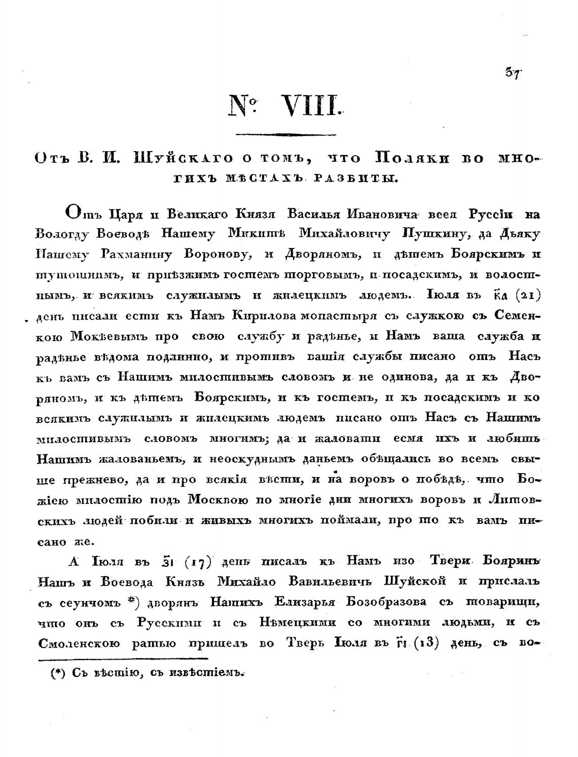 Нашь и Воевода Князь МихаЙдо Вавильевпчь Шуйской прислалъ