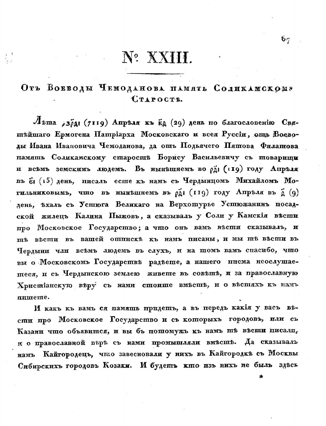 Отъ ВОЕВОДЫ ЧЕМОДЛНОВА Пл мять СОЛИКАМСЛ9Џ&