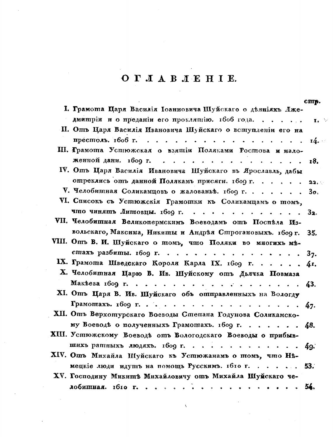XI. Отъ Царя В. Ив. Шуйскаго объ отправленныхъ на Вологду