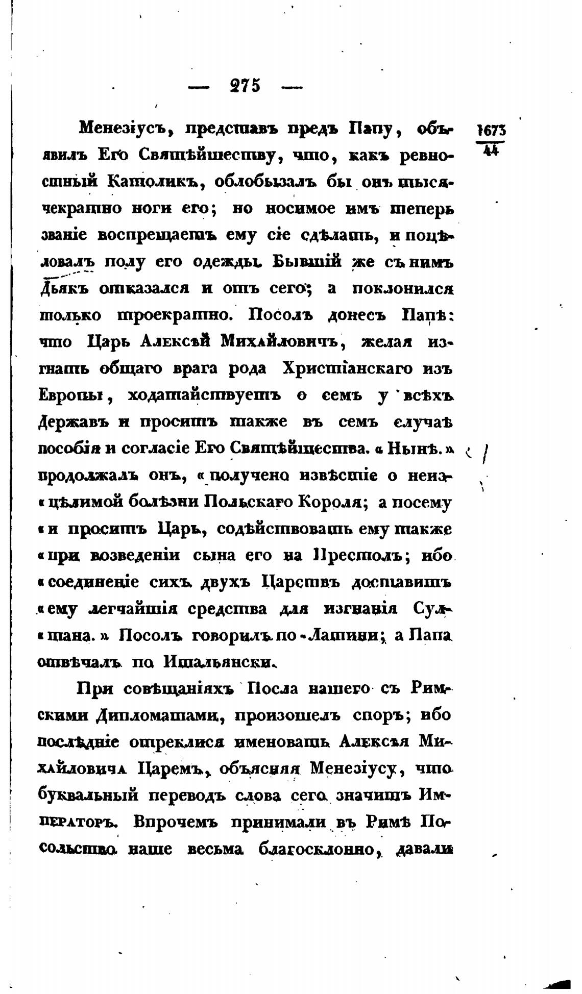 что Царь АлвксвЙ МИХАЙЛОВИЧЪ, желал из.