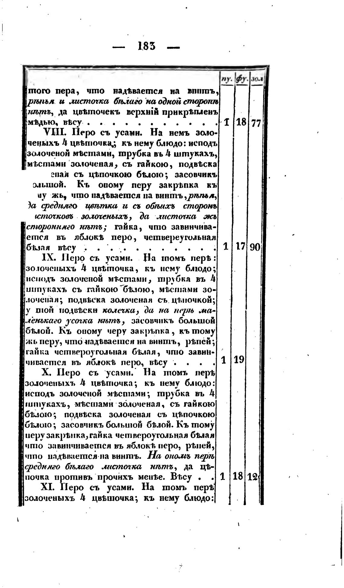VIII. Перо съ усами. На немъ золо-