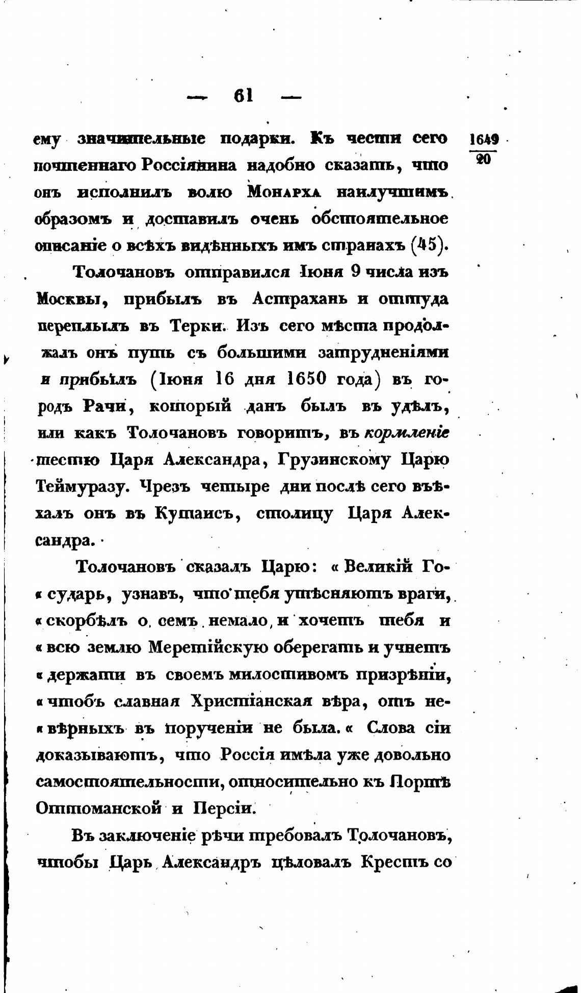 Толочановъ сказадъ Царю: « Великж Го-