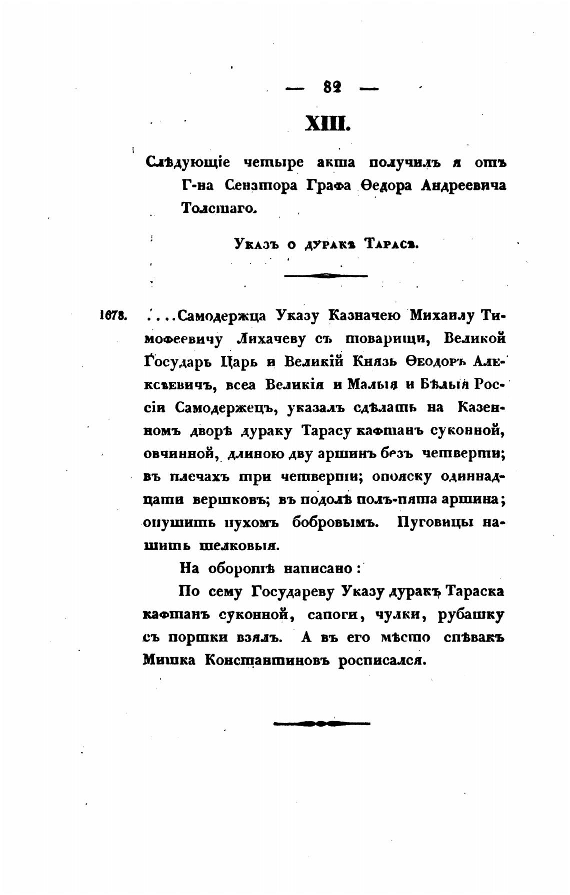 По сему Государеву Указу дуракъ Тараска