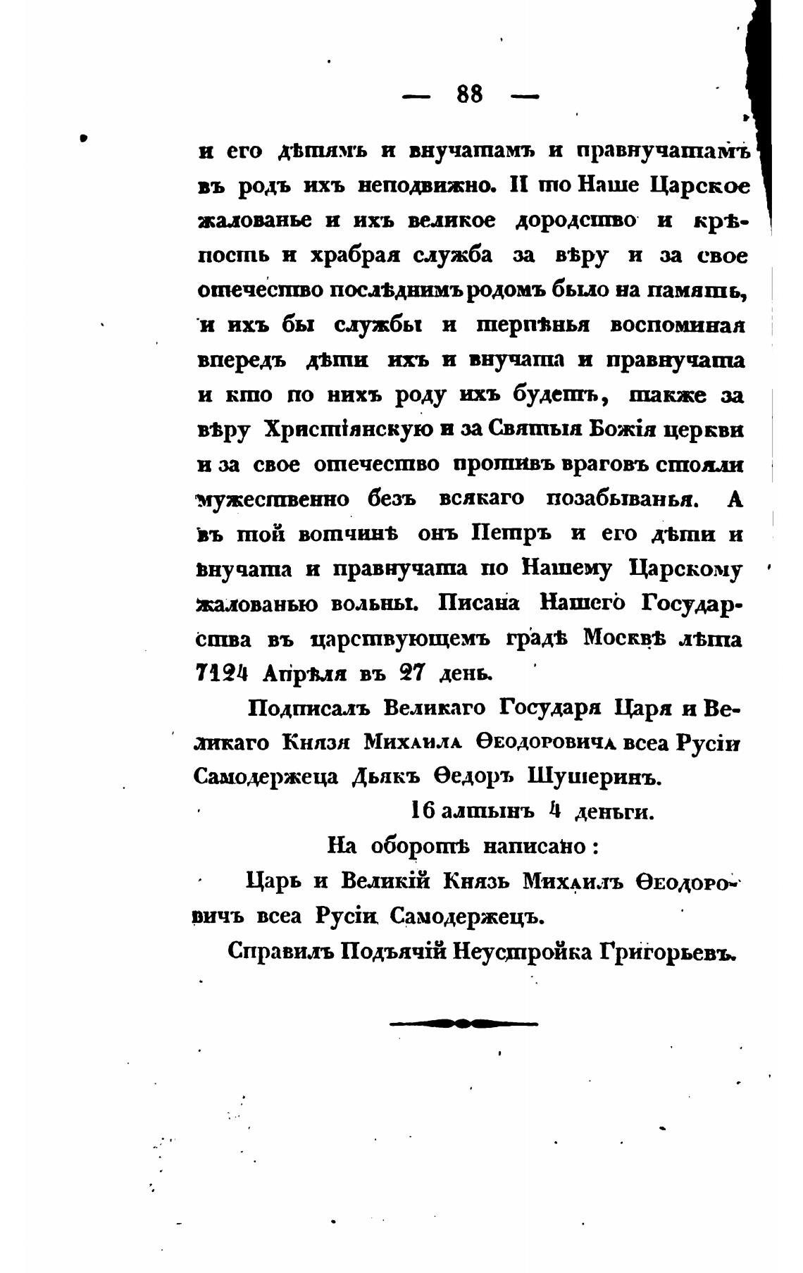 Самодержеца Дьякъ еедоръ Шушеринъ.