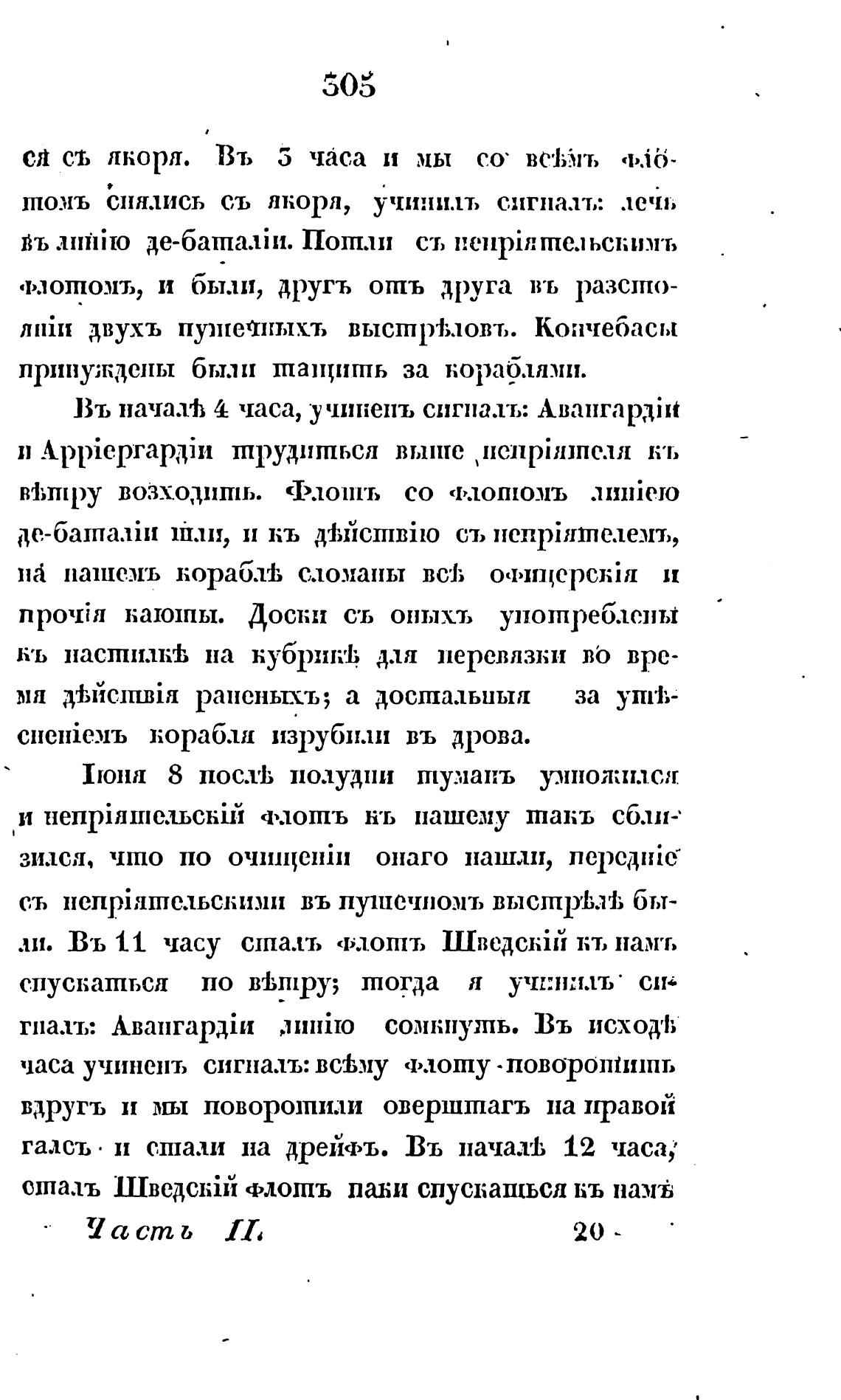 шомъ снялись съ якоря, учинилъ сигналь: лечь