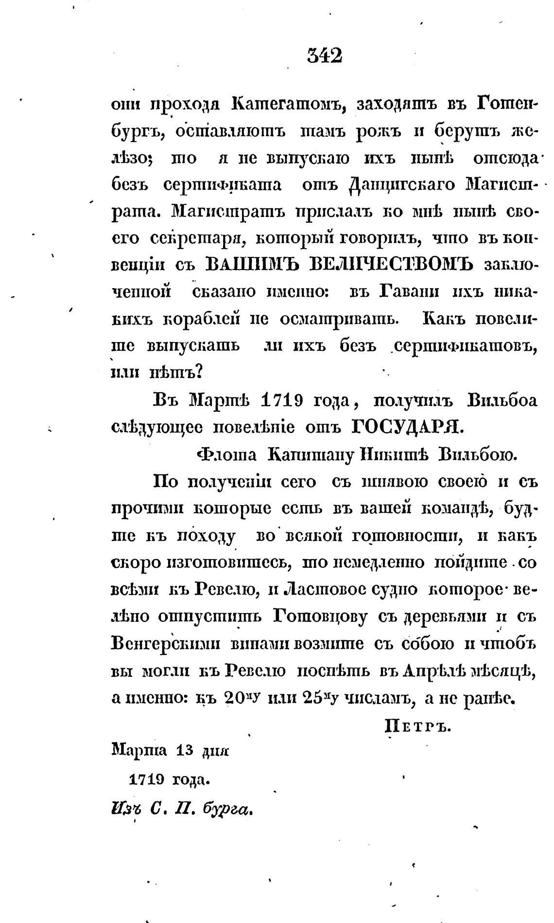 Въ Марпт1; 1719 года, получилъ Вильбоа
