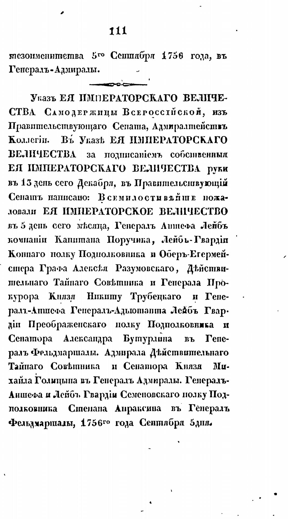 Фельамаршадьт, 1756го года Сентябри 5днн,