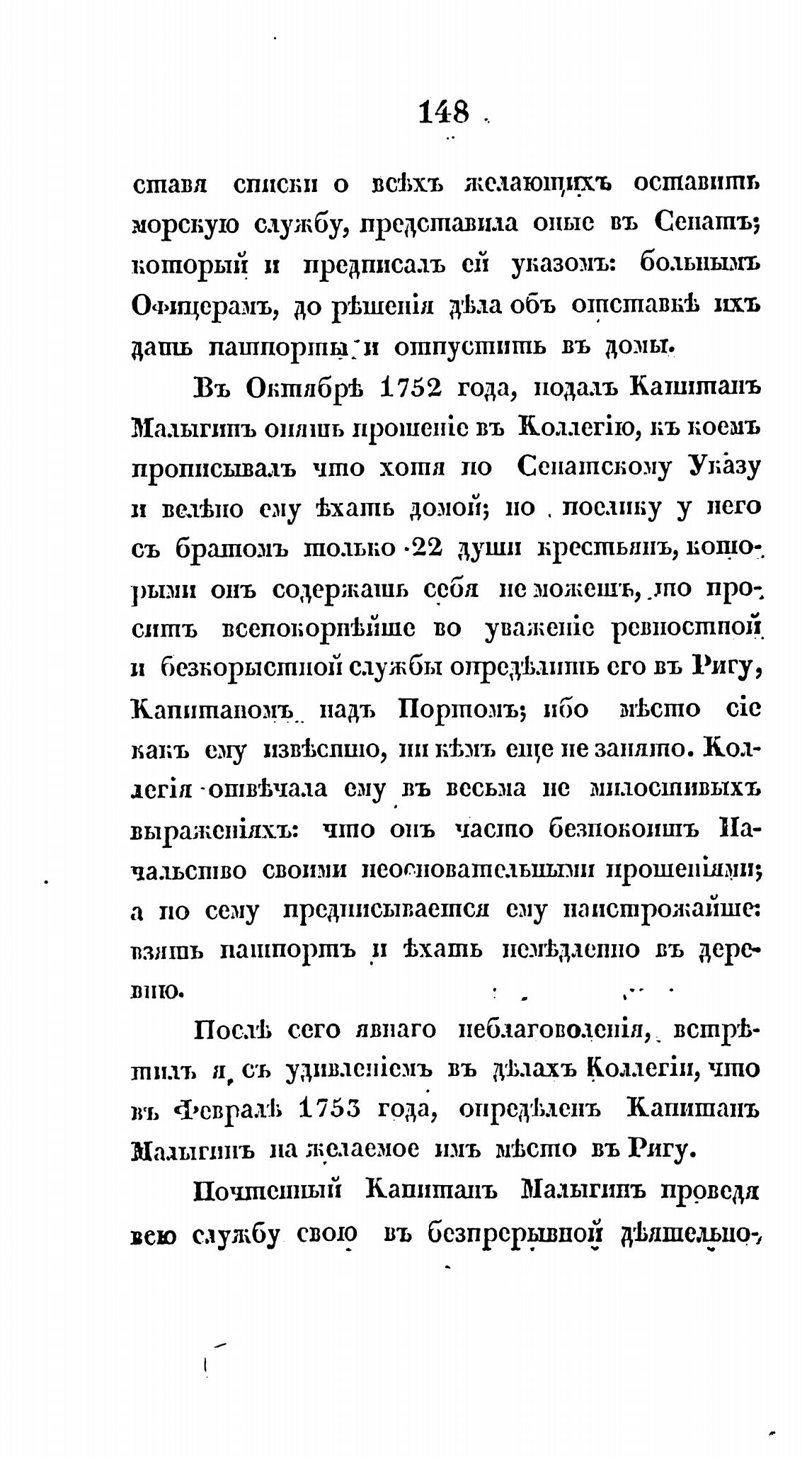 Въ ОкшлбрТ) 1752 года, подаль Капитапъ