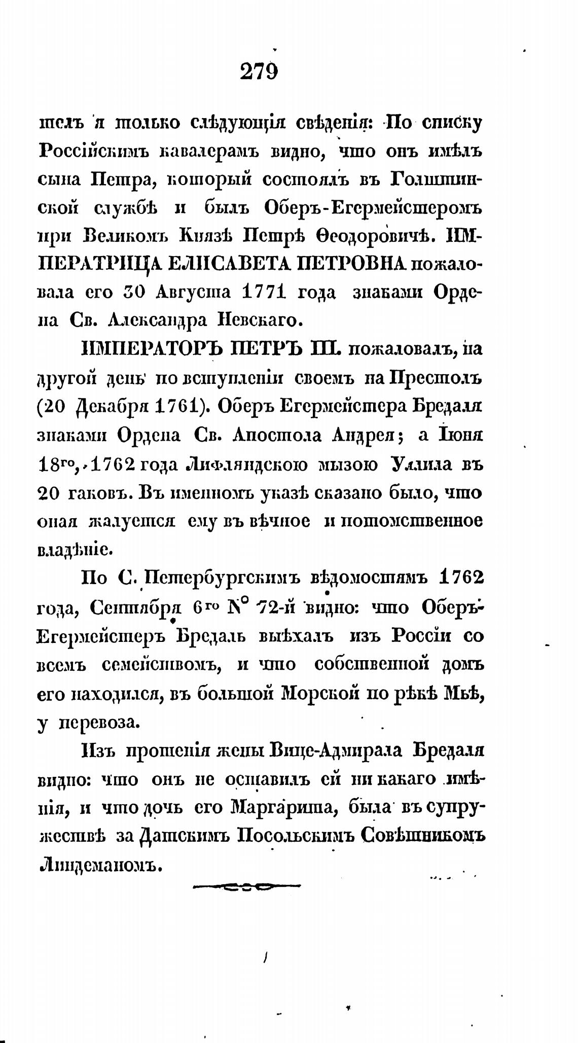 (20 Декабря 1761). Оберъ Егермейстера Бреда.ш