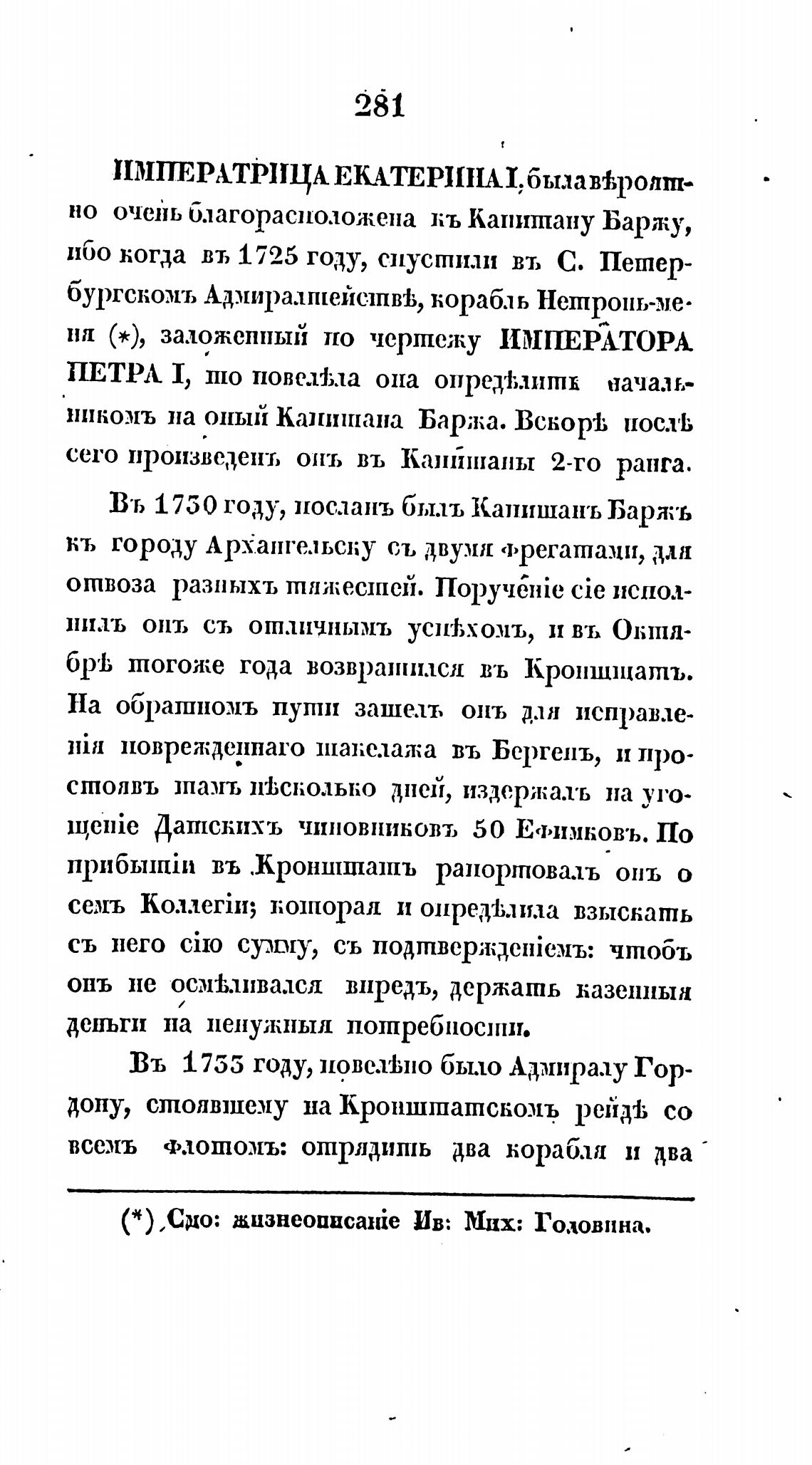 никомъ на оный Капишана Баржа. Вскор1; нос.тЬ
